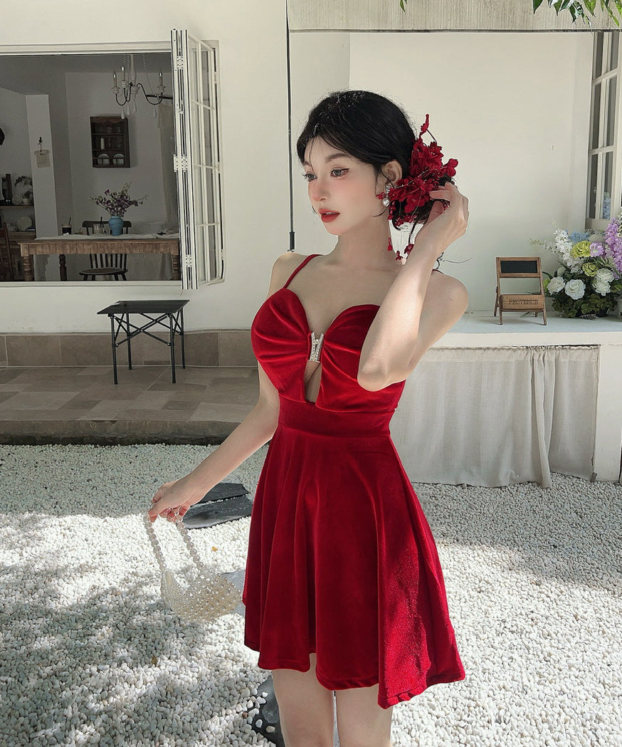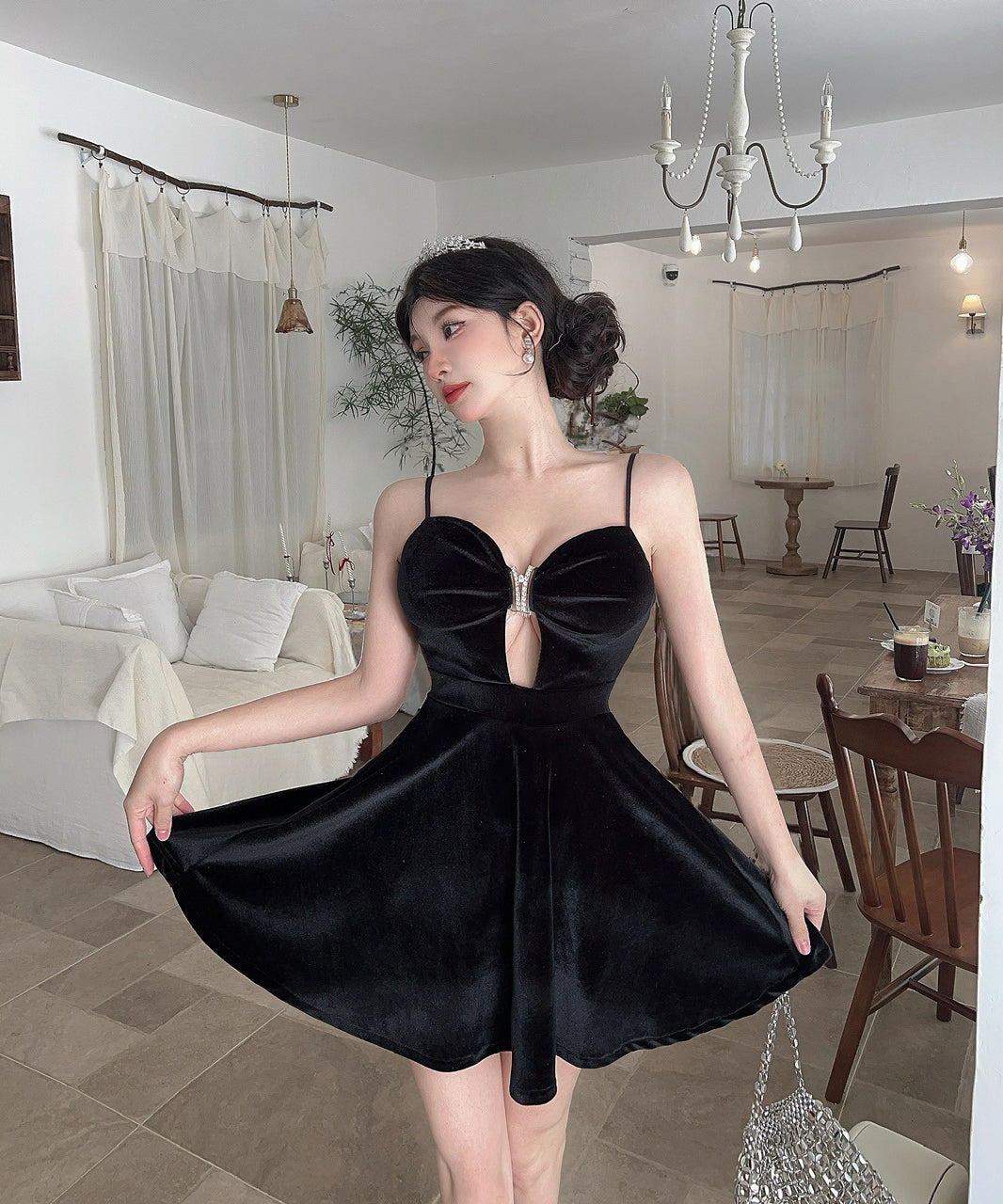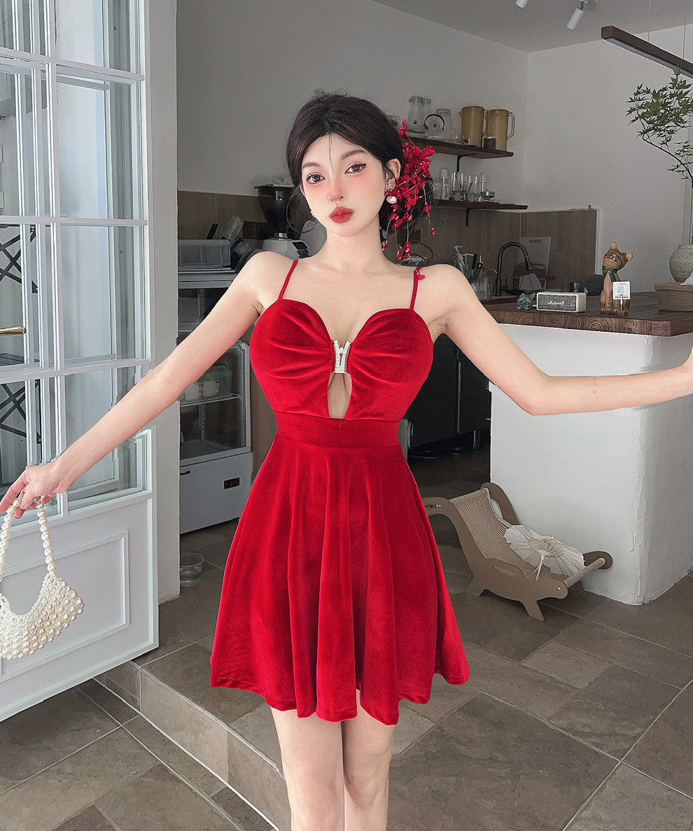 【2色】 ミニドレス キャバドレス セクシー 谷間魅せ Vネック ベルベット タイトキャミワンピース ウエストマーク パーティー 指名 LW2-DD5932