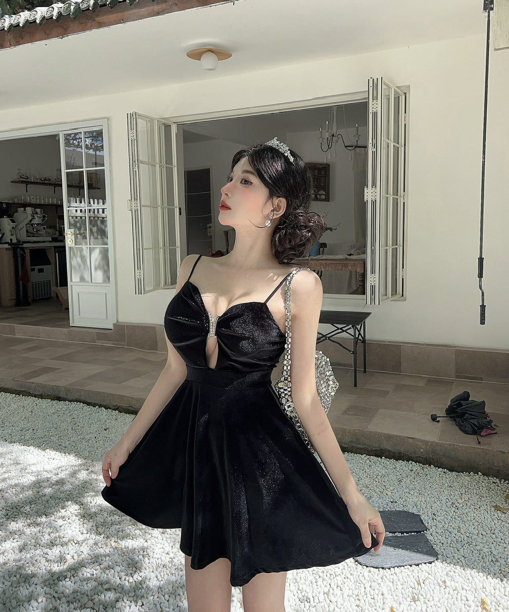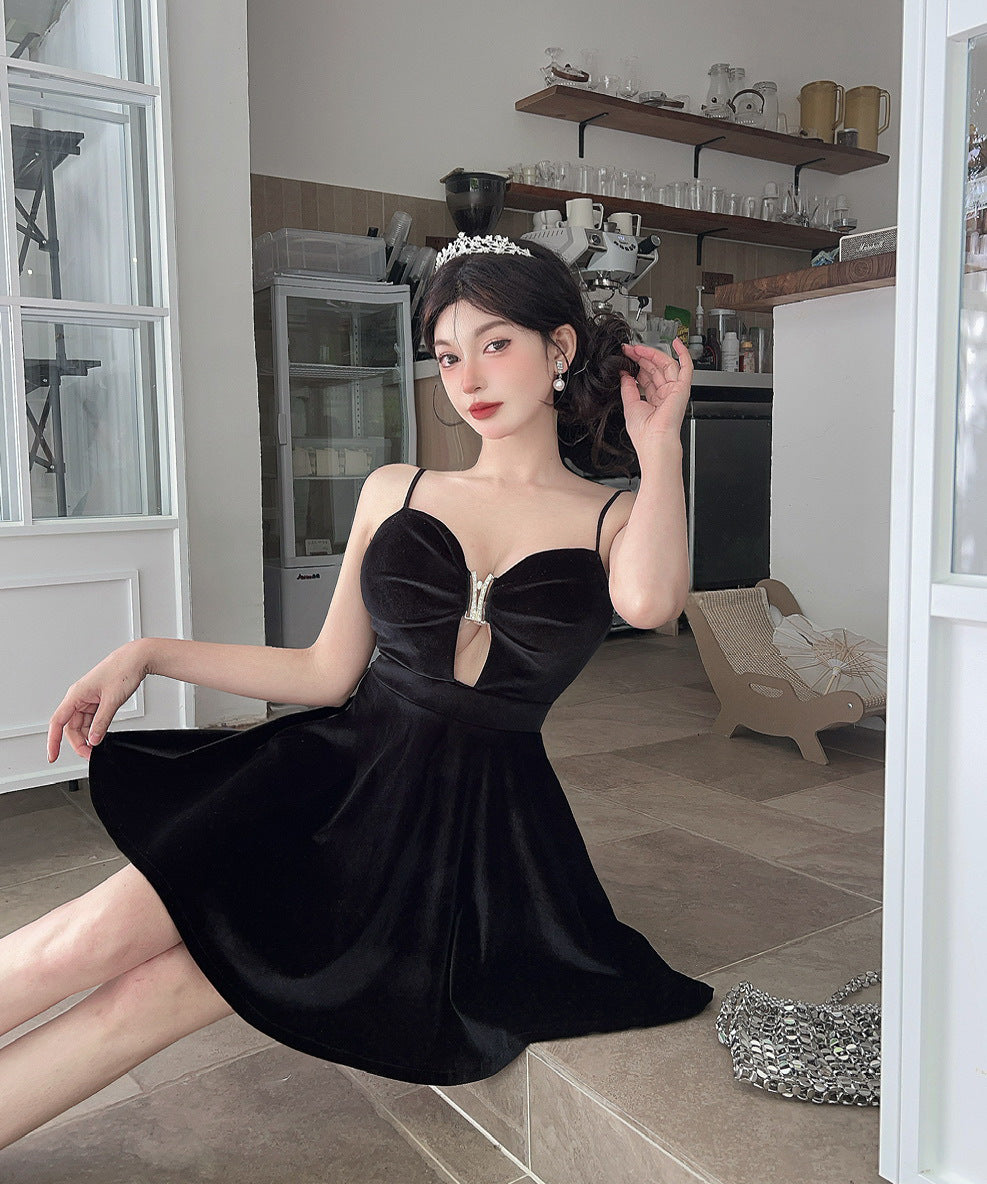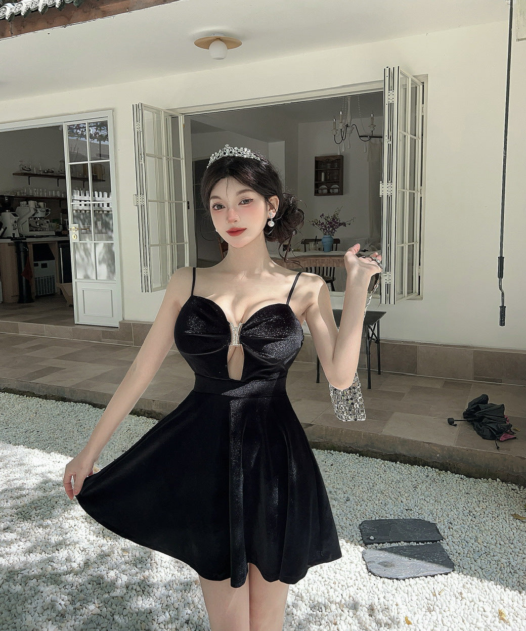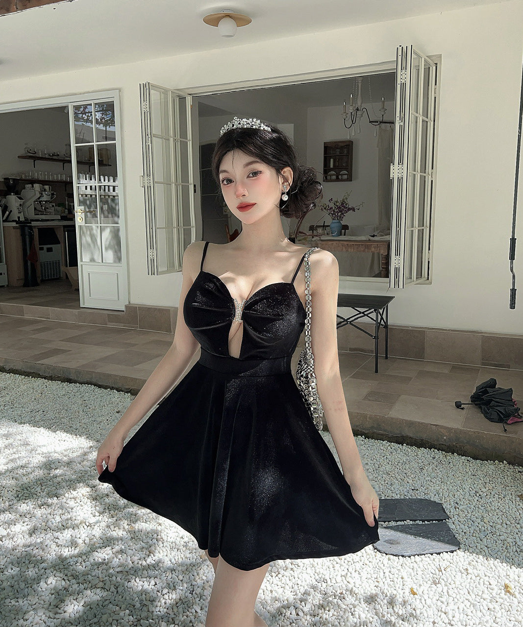 【2色】 ミニドレス キャバドレス セクシー 谷間魅せ Vネック ベルベット タイトキャミワンピース ウエストマーク パーティー 指名 LW2-DD5932