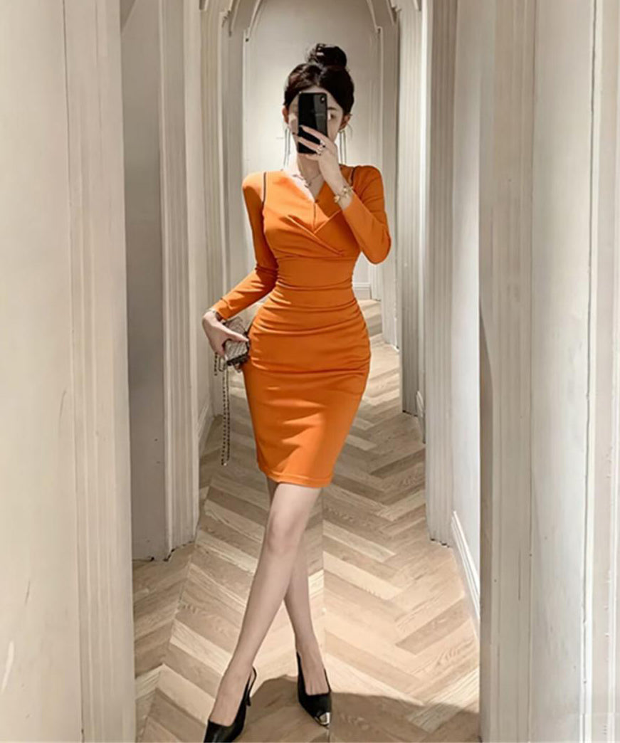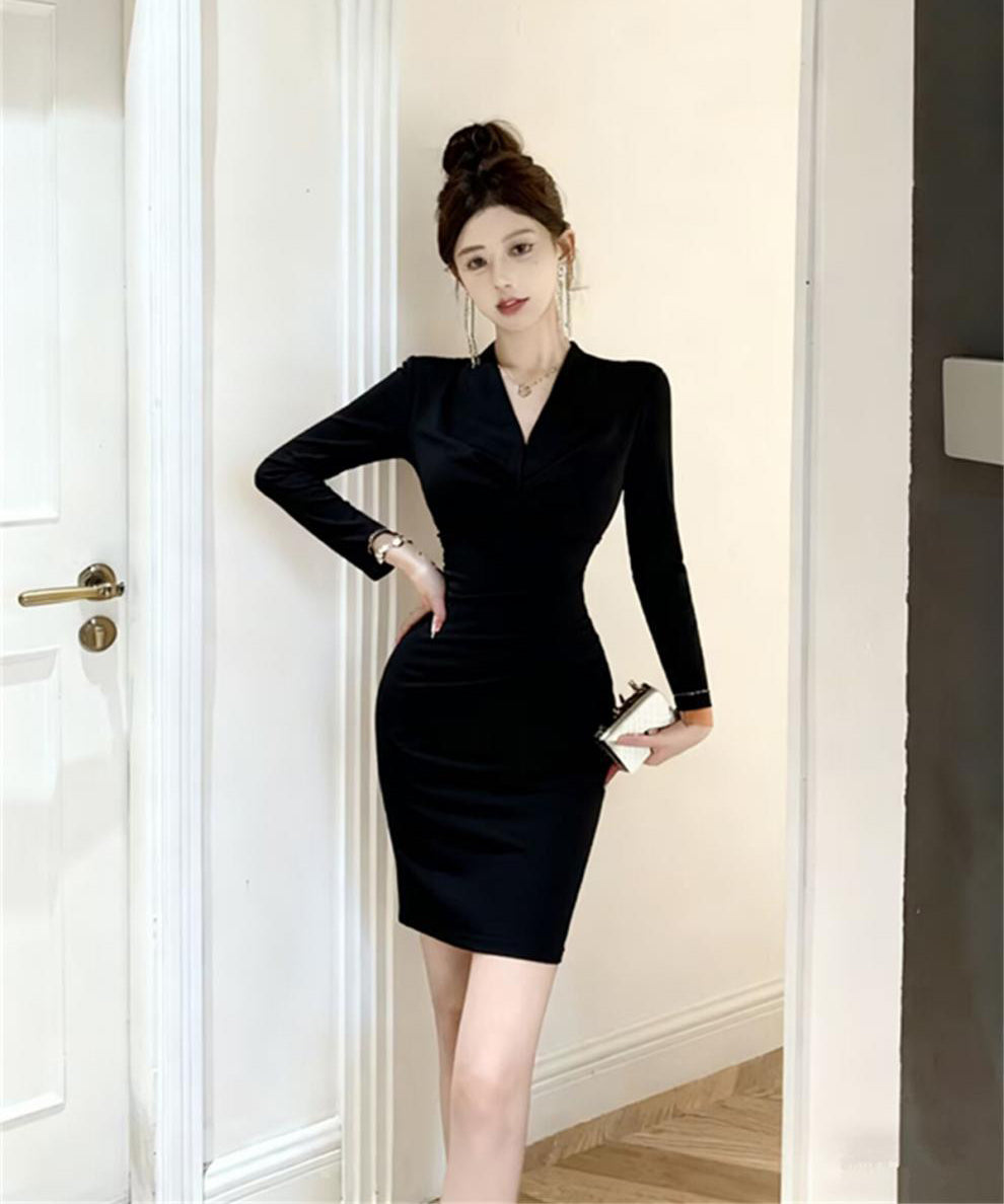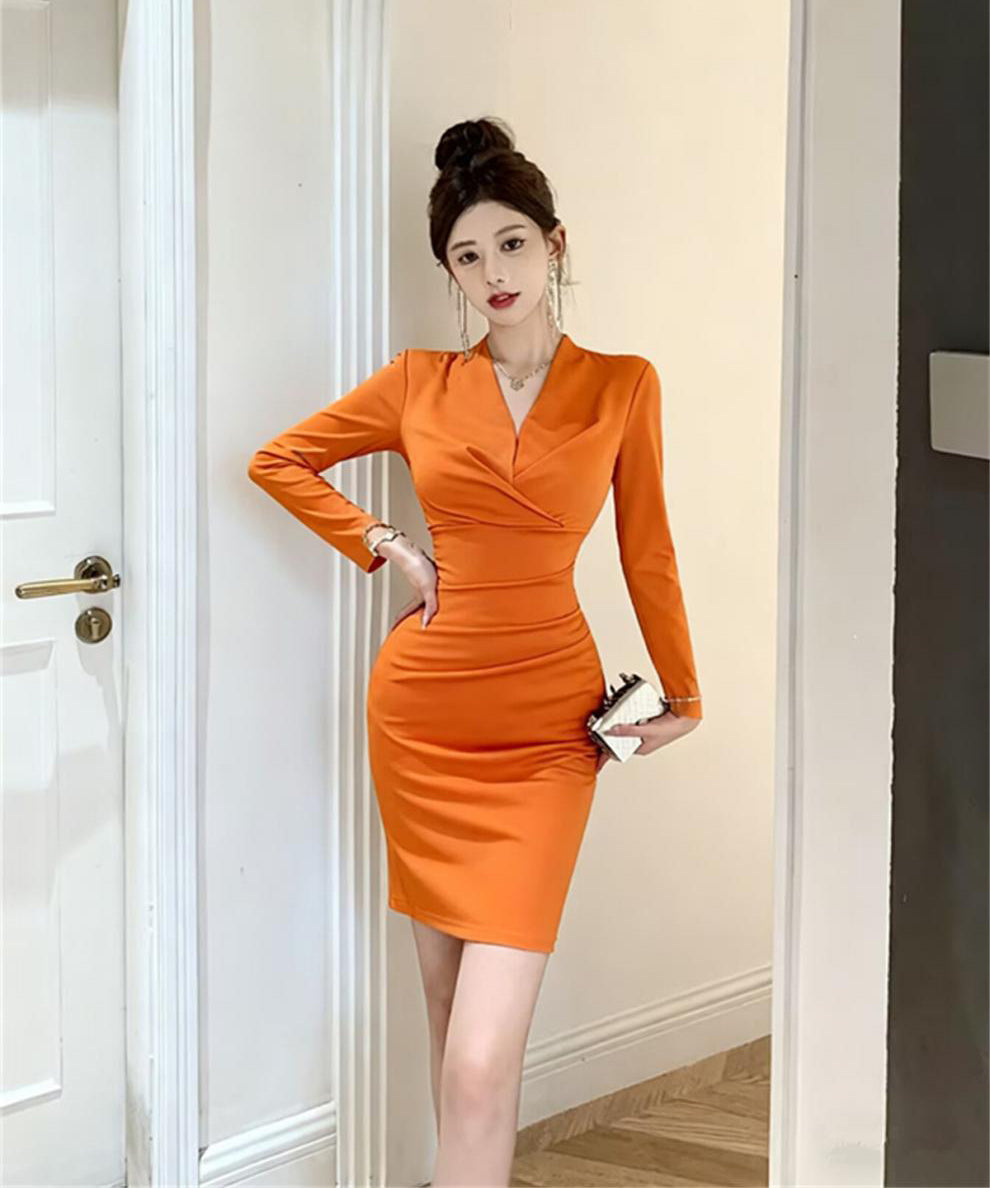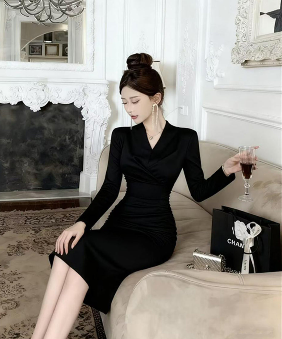 【2色】膝丈ドレス キャバドレス セクシー エレガント タイトワンピース ウエストシェイプ ドレープ デザイン ペンシルスカート スリムフィット 上品 LW2-ZED886530DXH348A