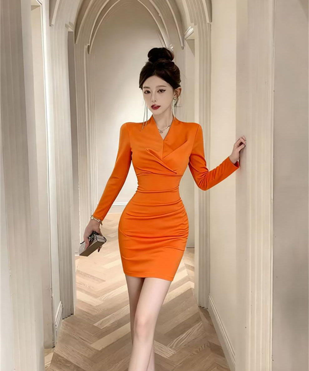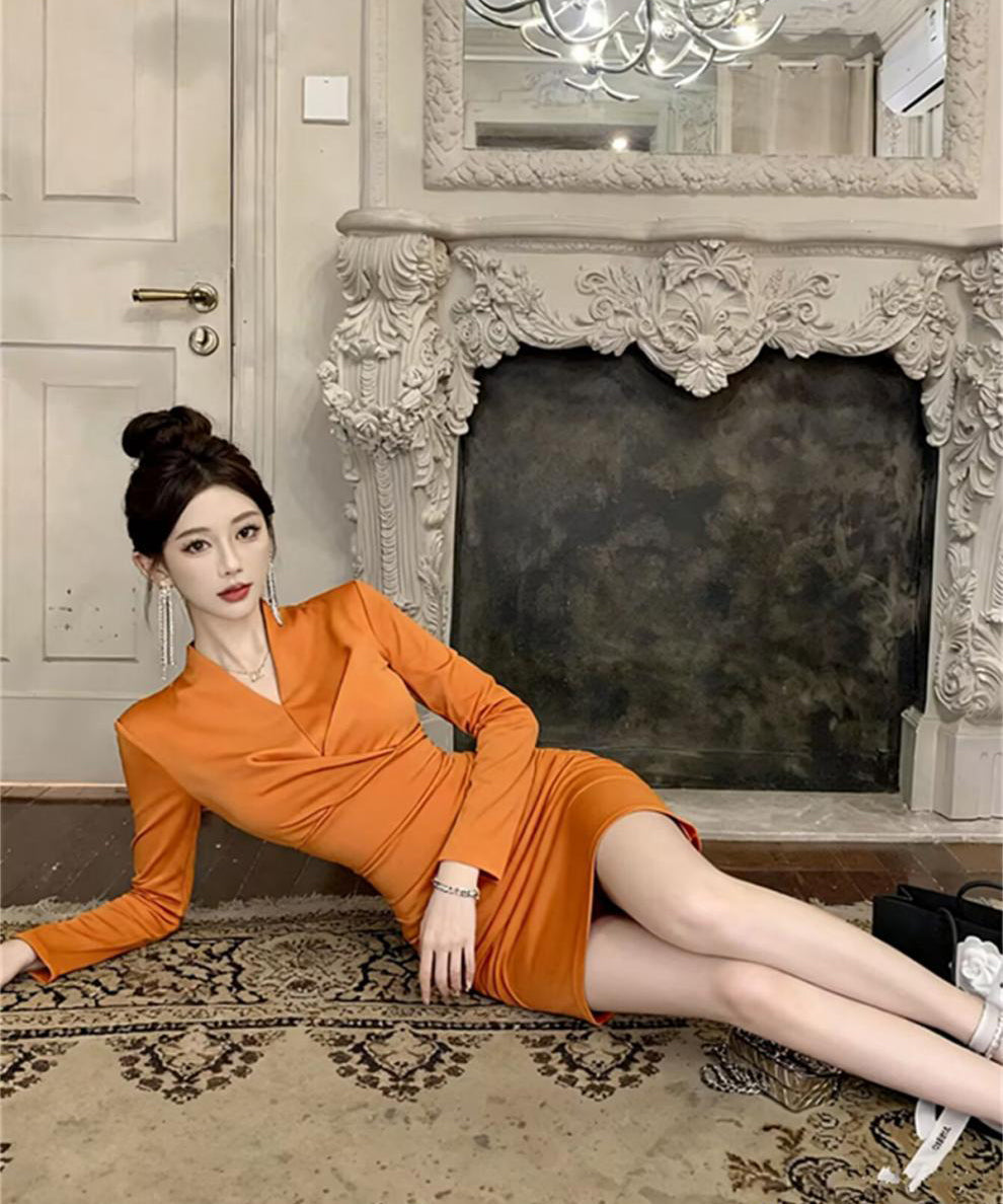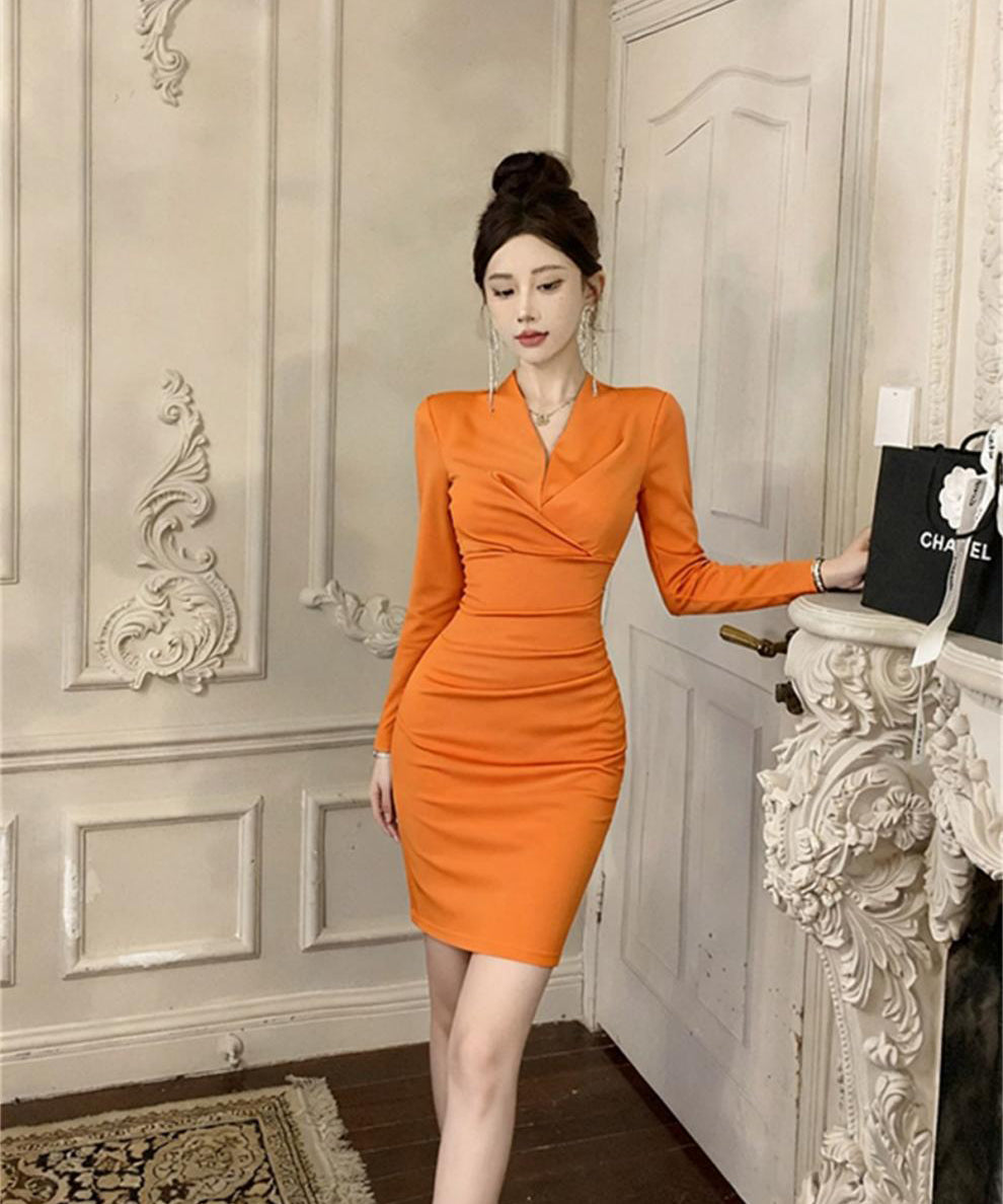 【2色】膝丈ドレス キャバドレス セクシー エレガント タイトワンピース ウエストシェイプ ドレープ デザイン ペンシルスカート スリムフィット 上品 LW2-ZED886530DXH348A