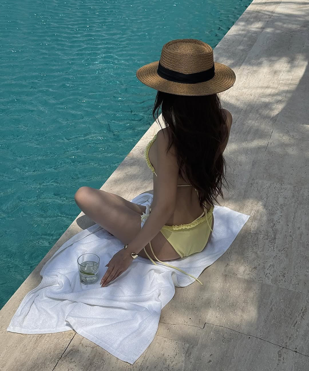 【3点セット】水着 ビキニ セクシー エッグイエロー フリル 細見え ホルターネック リボンストラップ ビーチ リゾート 温泉 JC7-DP-A23011