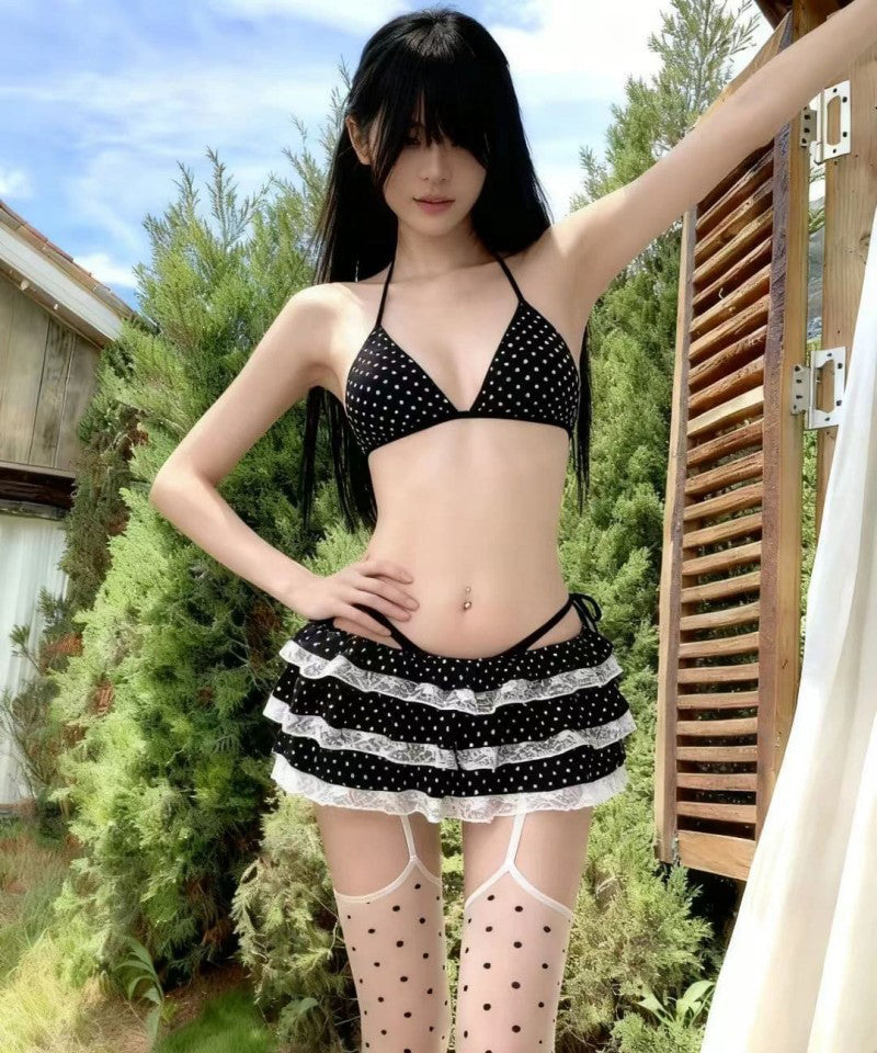【3点セット】水着 ビキニ セクシー ギャル系 ドット柄 ティアードスカート INS映え リゾート ビーチ 温泉 JC7-YQ-HH57586SNLL