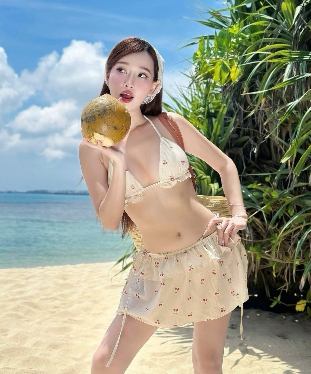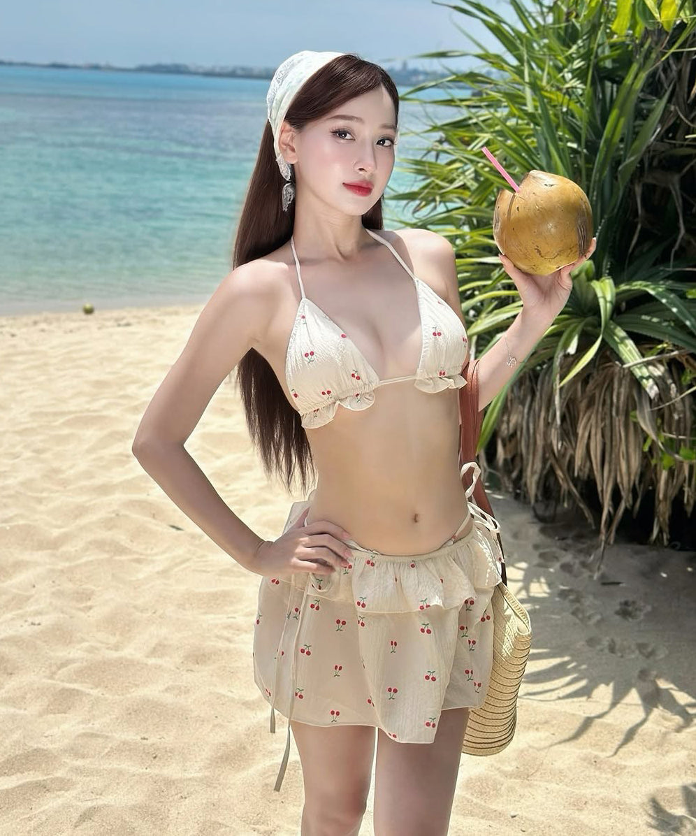 【3点セット】水着 ビキニ セクシー 韓国風 チェリー柄 ギャル系 レースアップ 温泉 リゾート 細見え JC7-DP-A23012