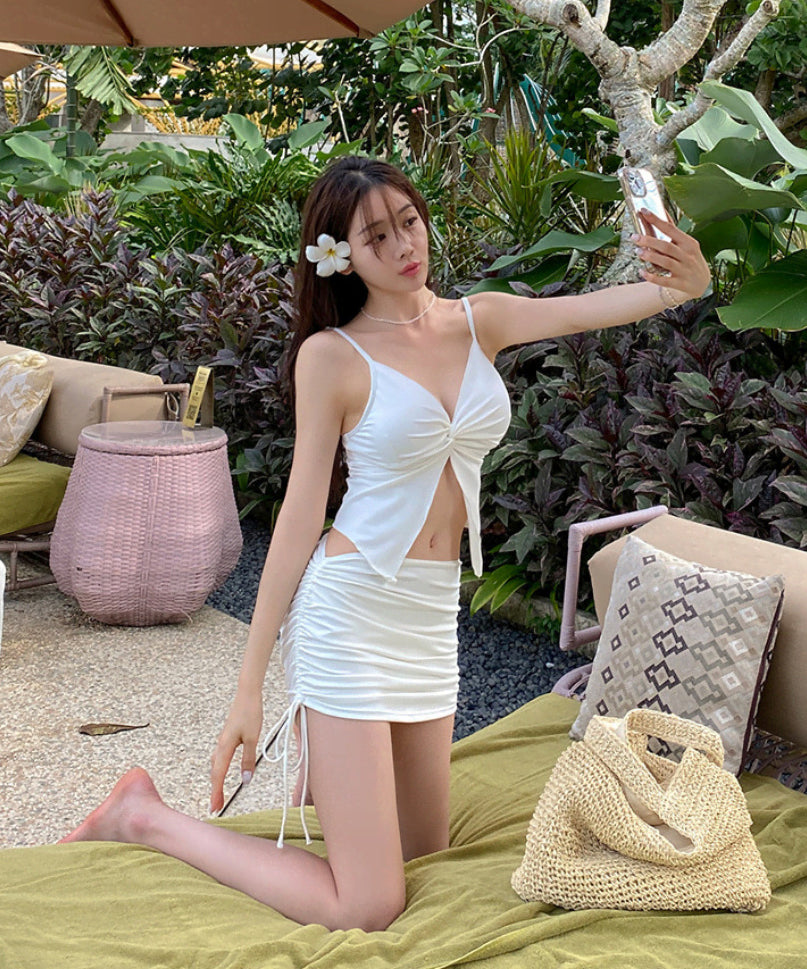 【3点セット】水着 ビキニ 韓国風 スカート付き ドローストリング ハイウエスト 温泉 リゾート ビーチ JC7-CF-SNM57092