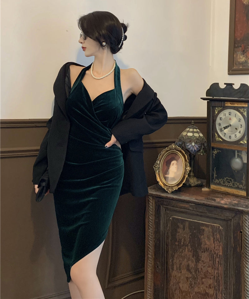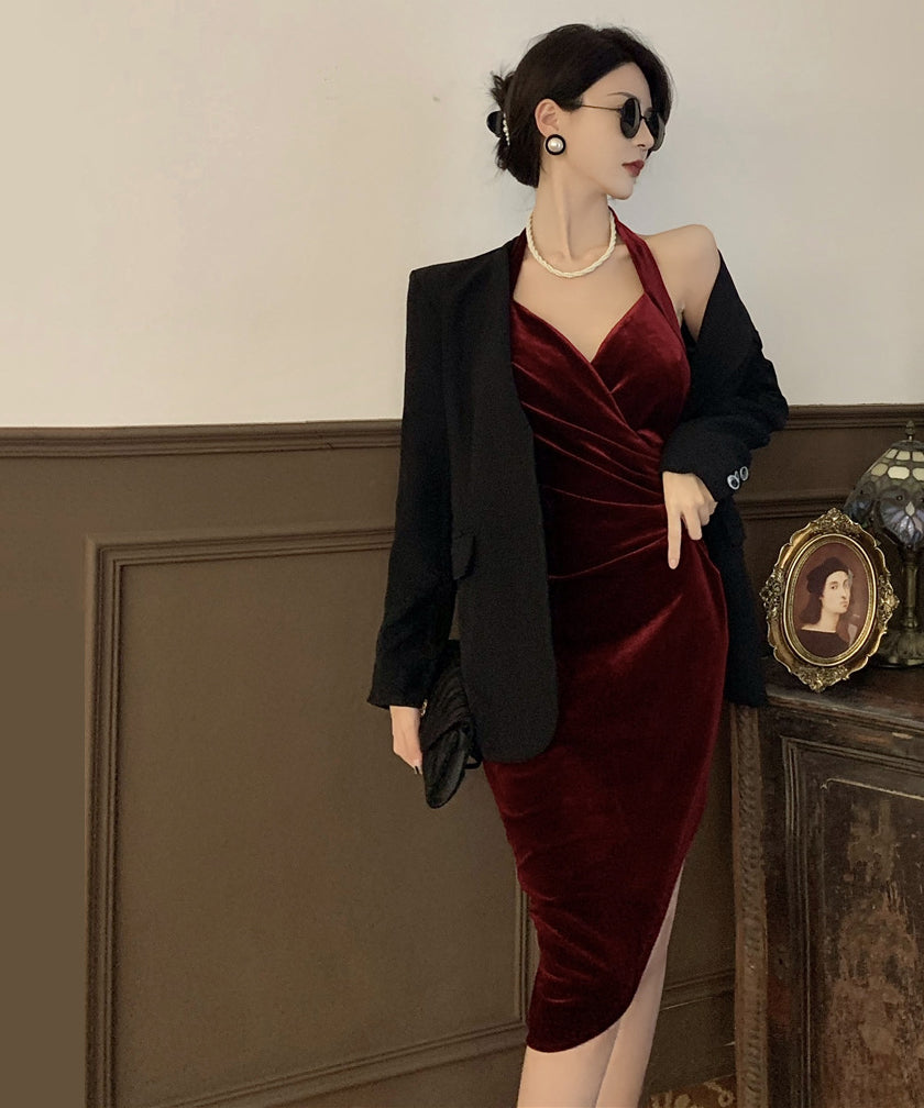 3色 ベルベット 高見え 姉 セクシー 二次会 パーティードレス ロングドレスMY2153-MLS5921