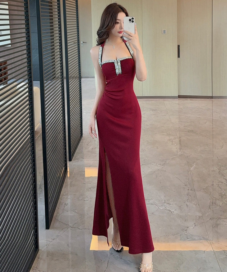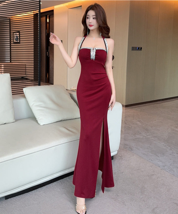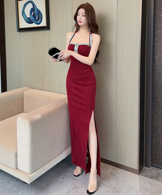 【3色】 ロングドレス キャバドレス セクシータイトキャミワンピ スリット入り ショート丈 デート 女子会 パーティー 二次会 LW2-OYF9758