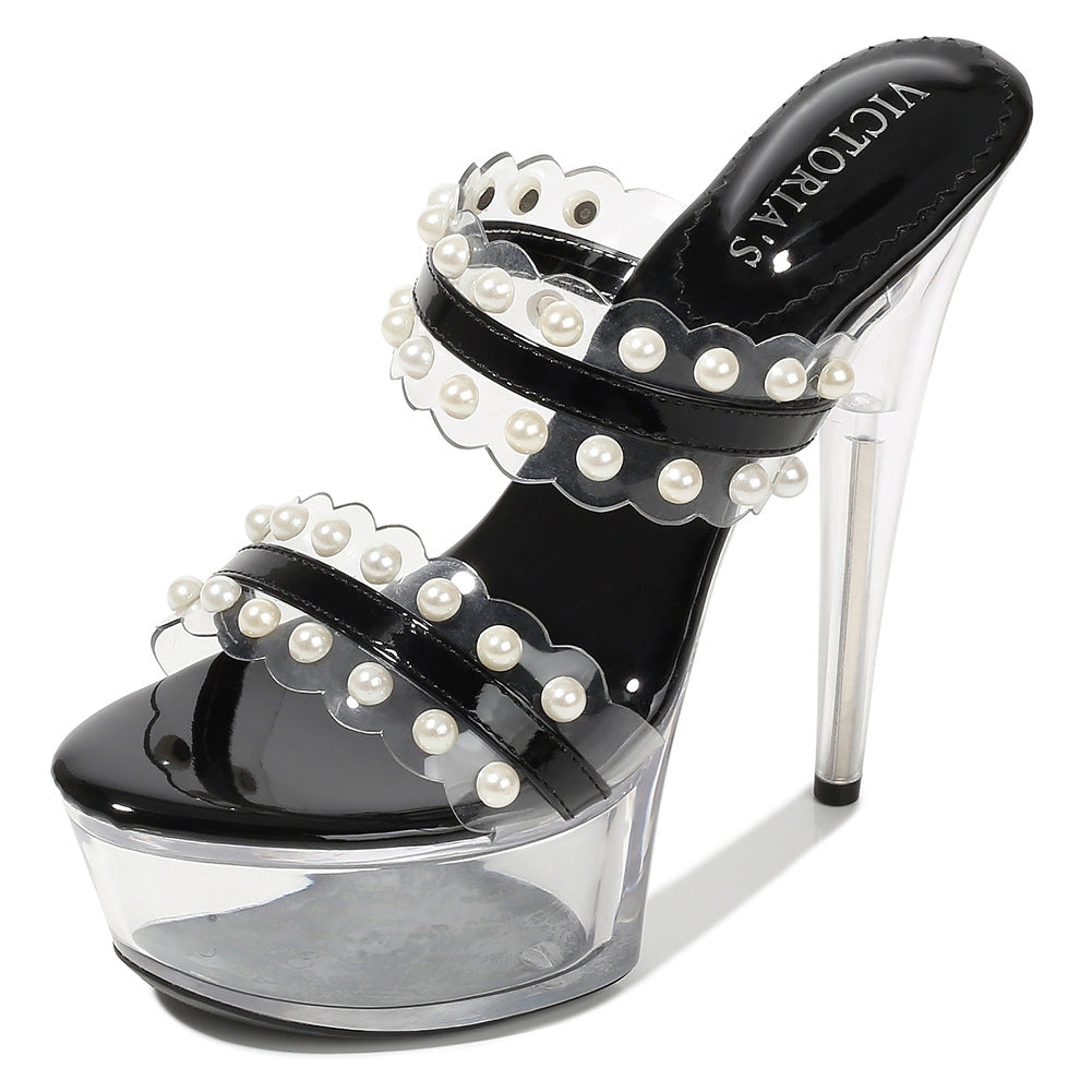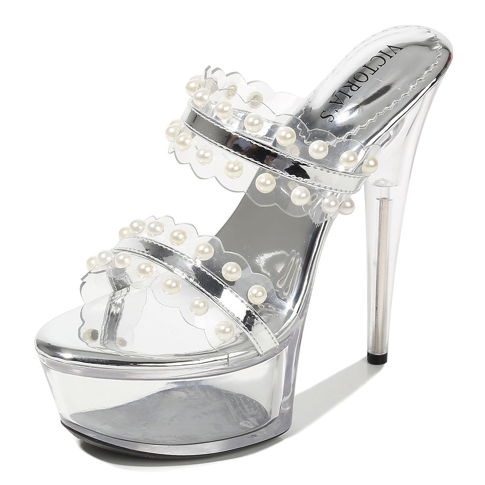 3色 size22.5cm-24.5cm 透明 ピカピカ スリッパ 脚長効果 ハイヒール YN5010
