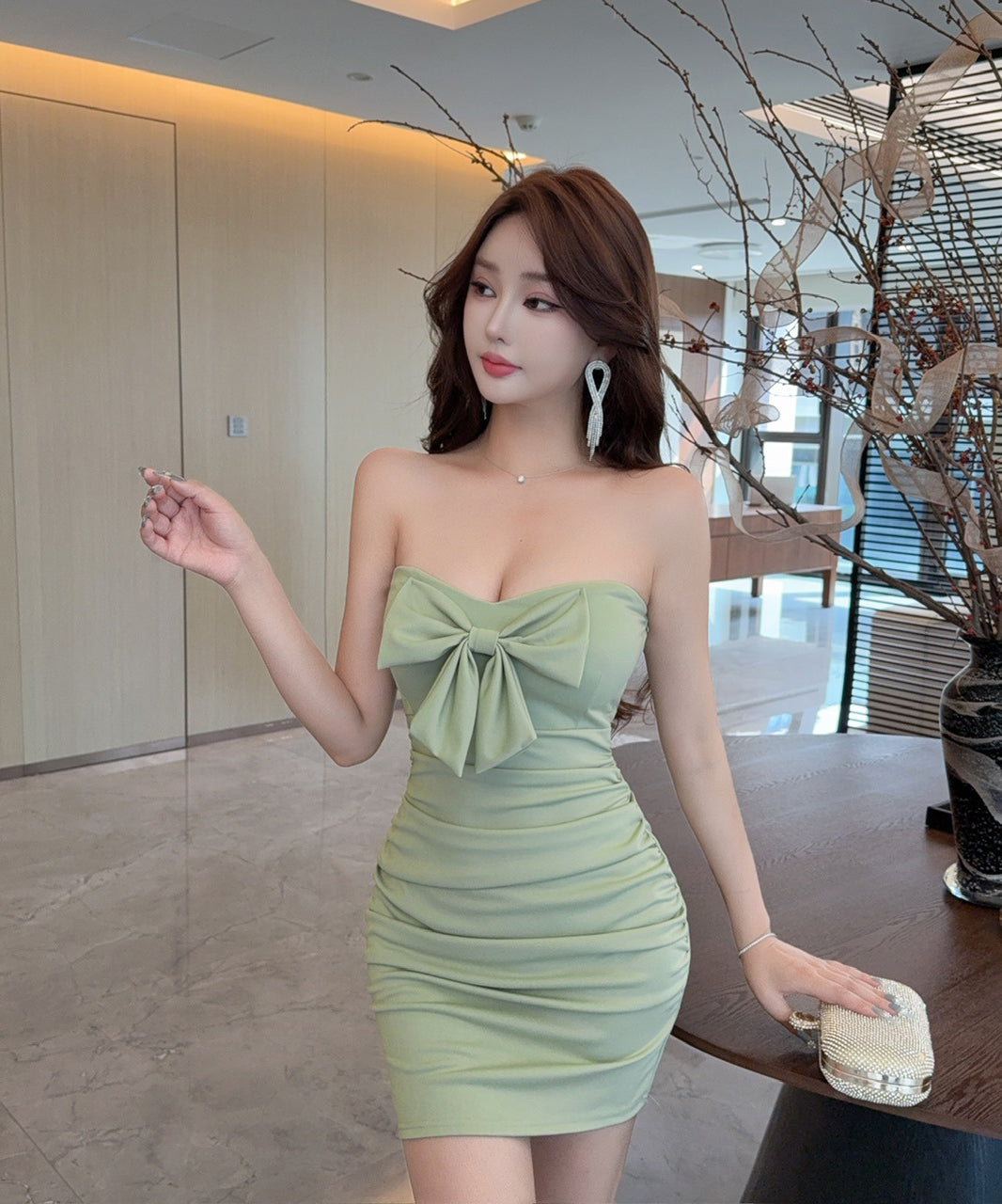 【4色】ミニドレス キャバドレス セクシー チューブトップ リボンデザイン タイトミニワンピース ナイトドレス LW2-DD5834