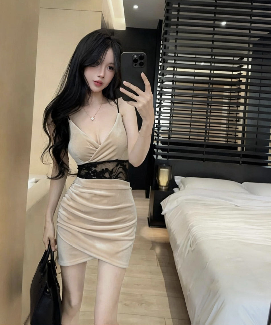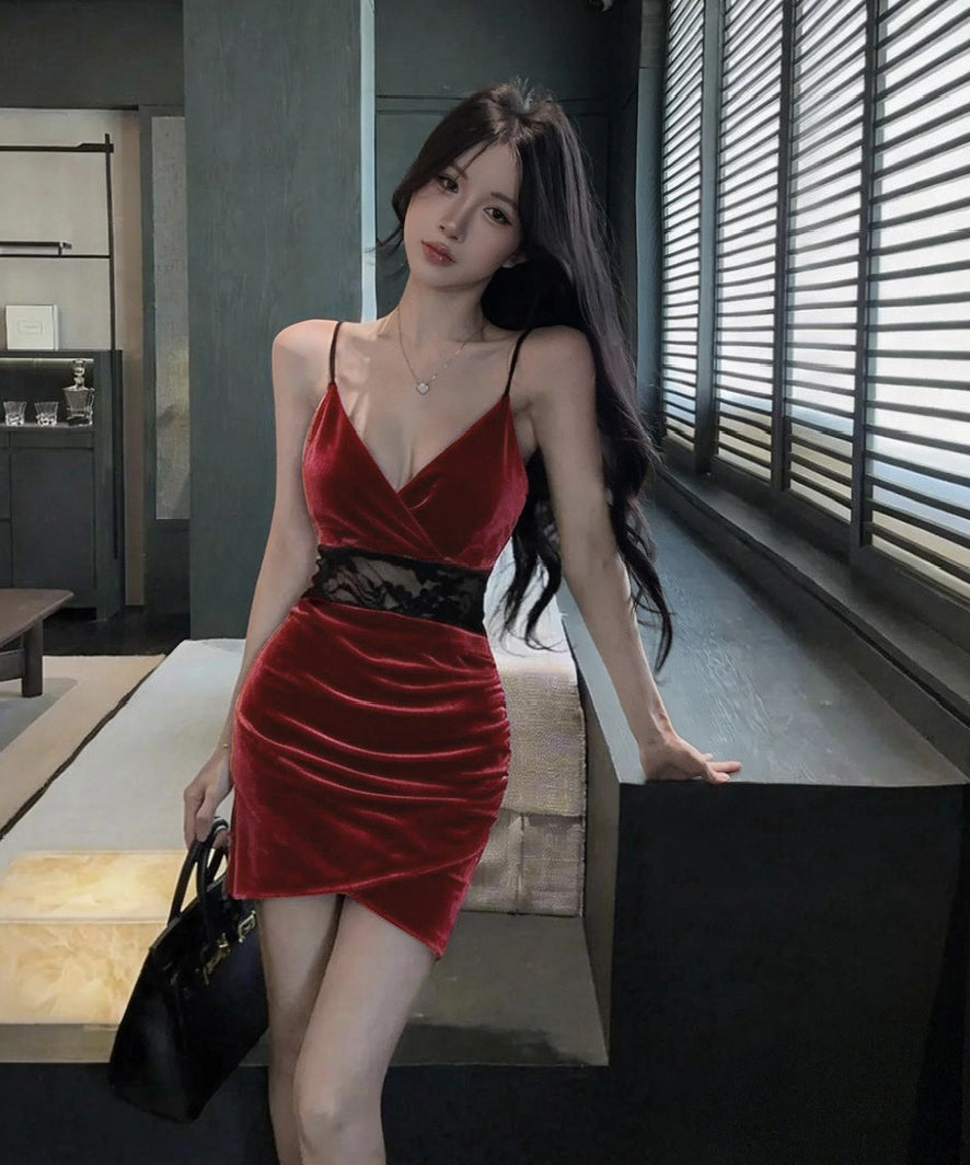 【4色】ミニドレス キャバドレス セクシー ディープネック ベロア ボディライン キャミソール バックオープン 指名向け クラブ JC2-DD6298