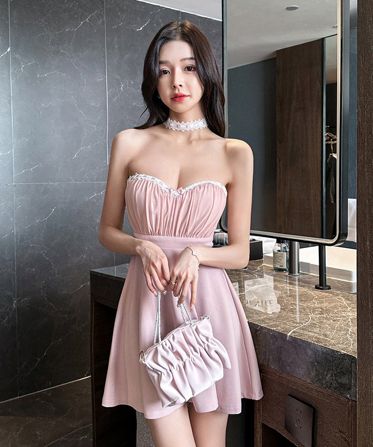 【4色】ミニドレス キャバドレス セクシー ベアトップ Aライン バックレス 谷間見せ ナイトドレス 夜遊び 指名アップ JC2-YM8891