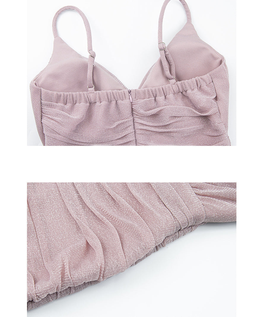 Lady's coco ミニドレス キャバドレス セクシー タイトキャミワンピース ギャザー入り 深V 背中開き ショート丈 ナイトクラブ LW2-YM8885