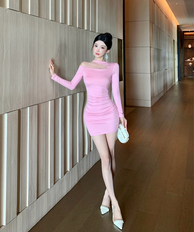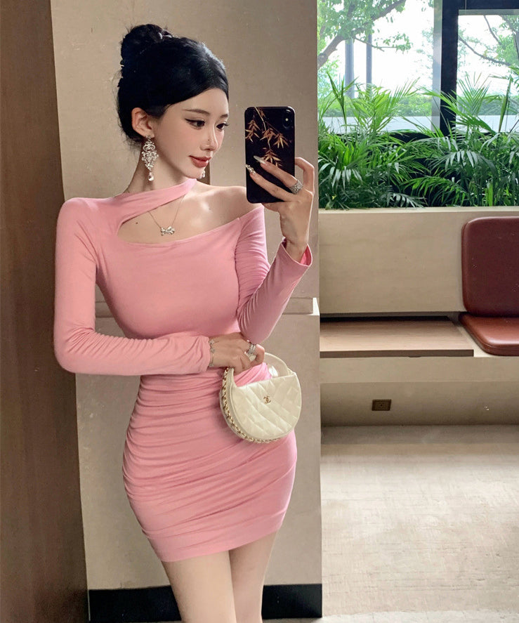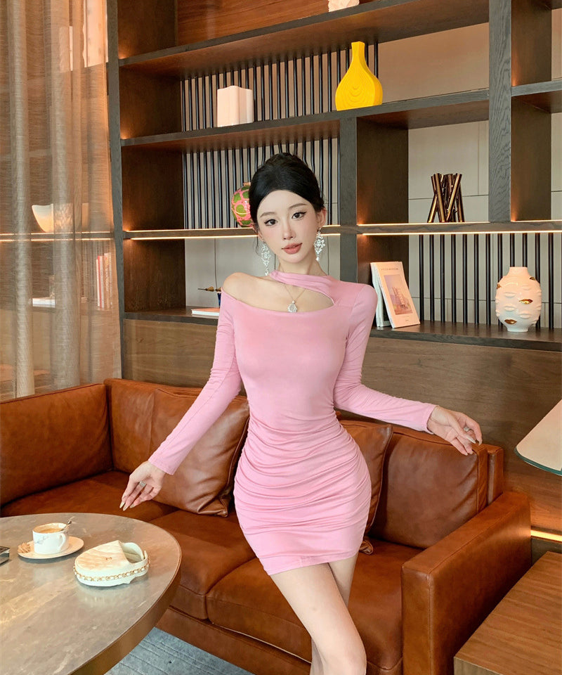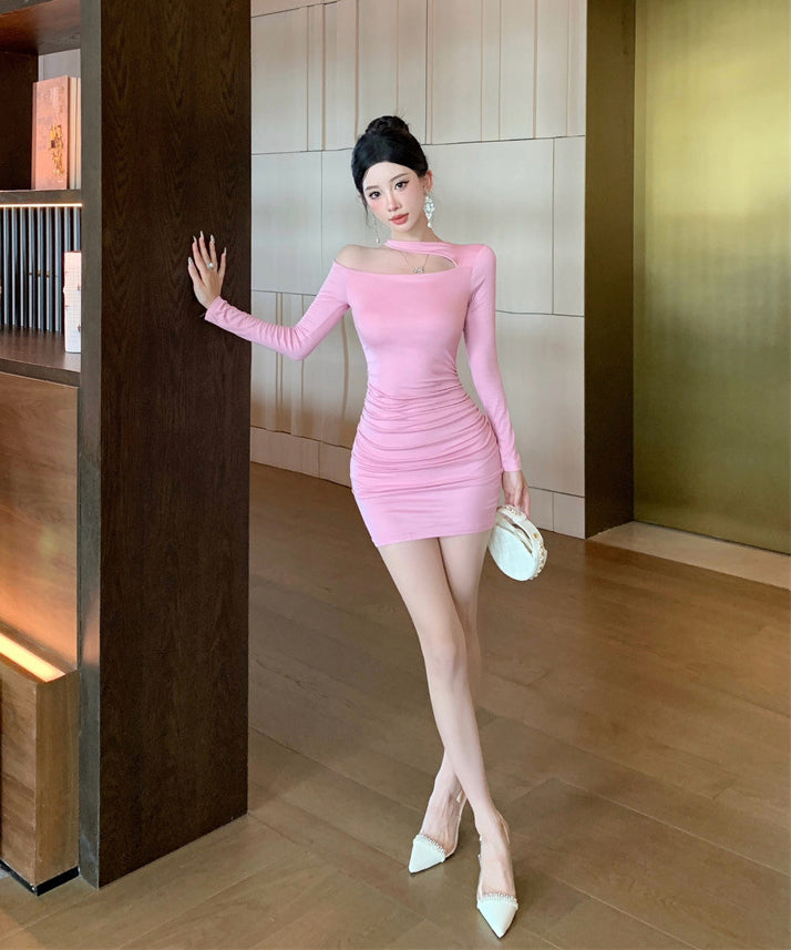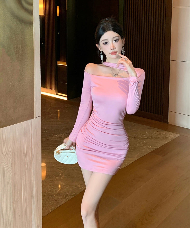 Lady's coco ミニドレス キャバドレス セクシー デザイン オフショルダー ウエストマーク ドレープ タイトスカート ペンシルライン デート LW2-ZED888881DXH348B