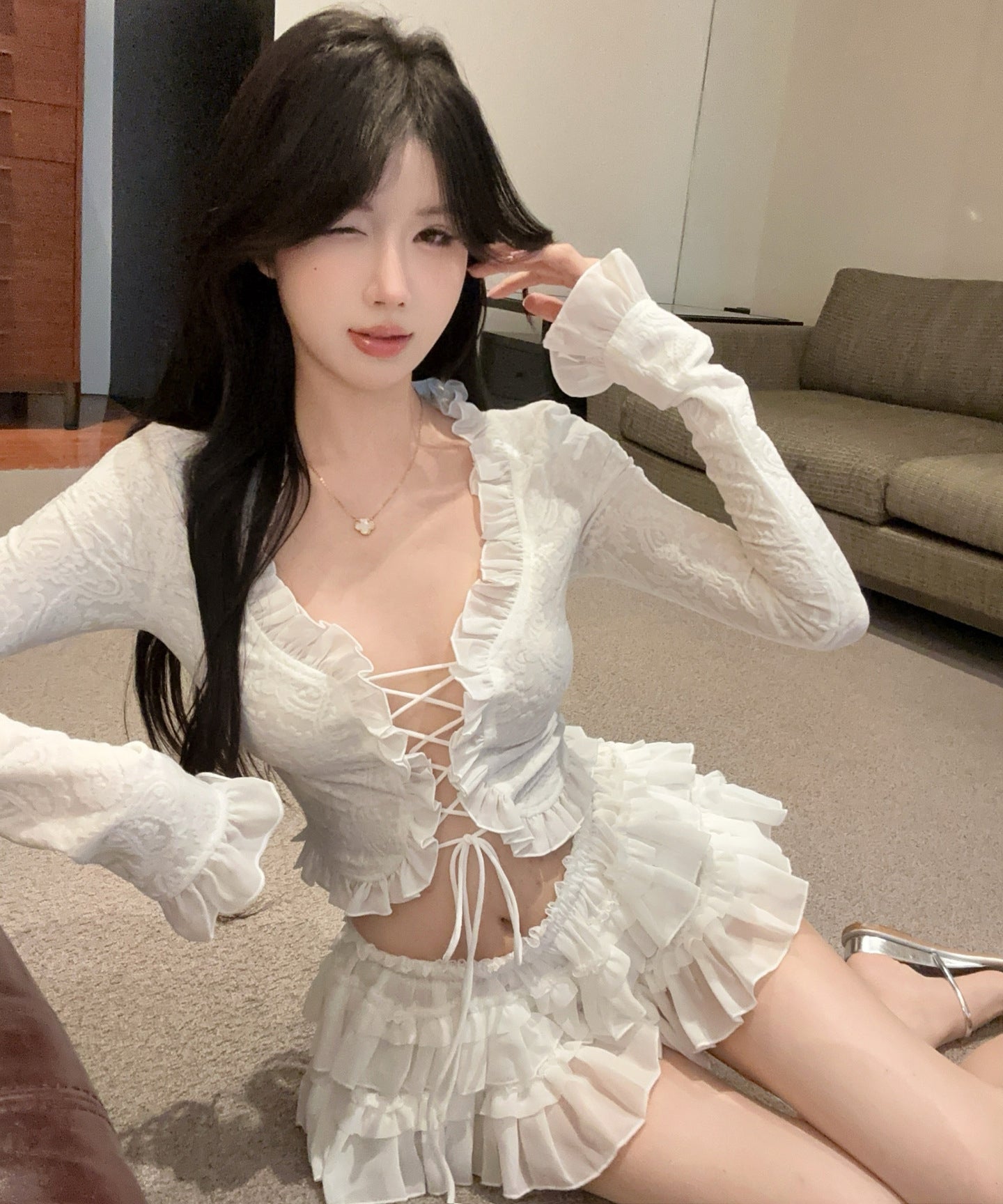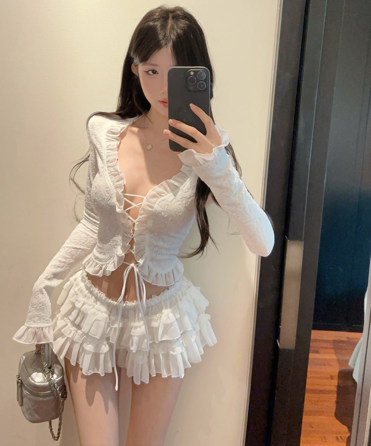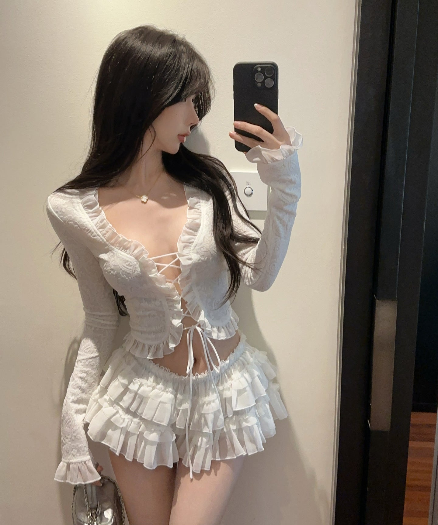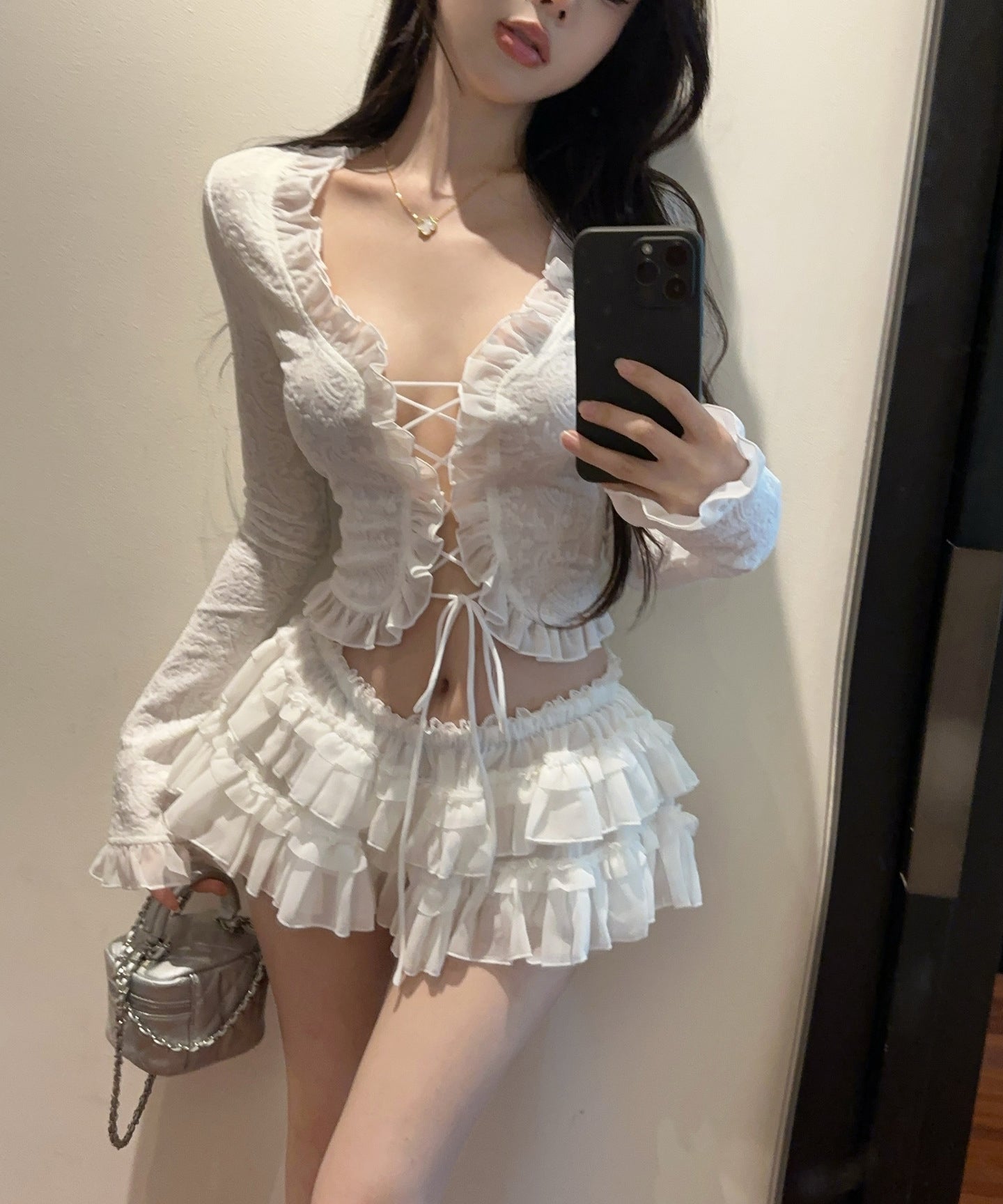 Lady's coco ミニドレス キャバドレス セクシー レースアップ カーディガン 花柄 レース LW2-SB18YX2593