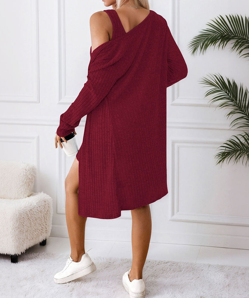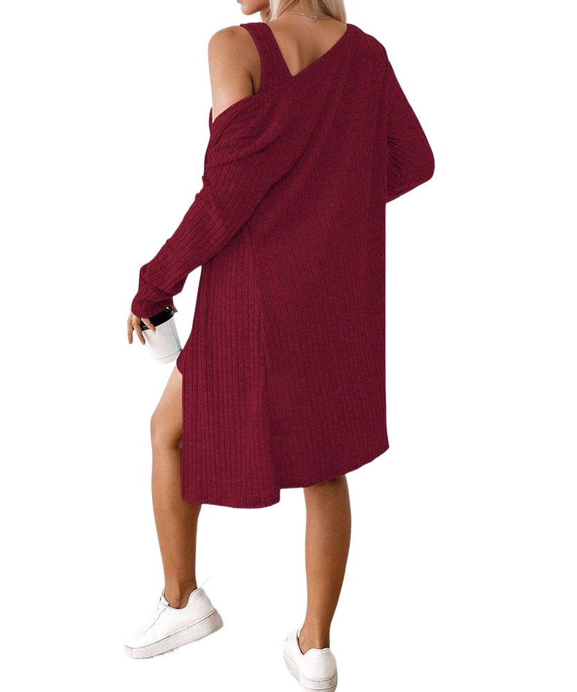 Lady's coco ミニドレス キャバドレス セクシー 2点セット オフショルダー カーディガン 長袖 ボタン付き LW2-YSQYUFG3150