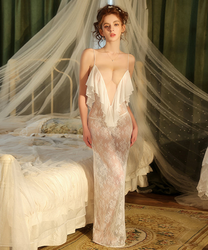 Lady's coco ランジェリー セクシー 大人可愛い ネグリジェ レース 深V 背中あき LW2-GR19909
