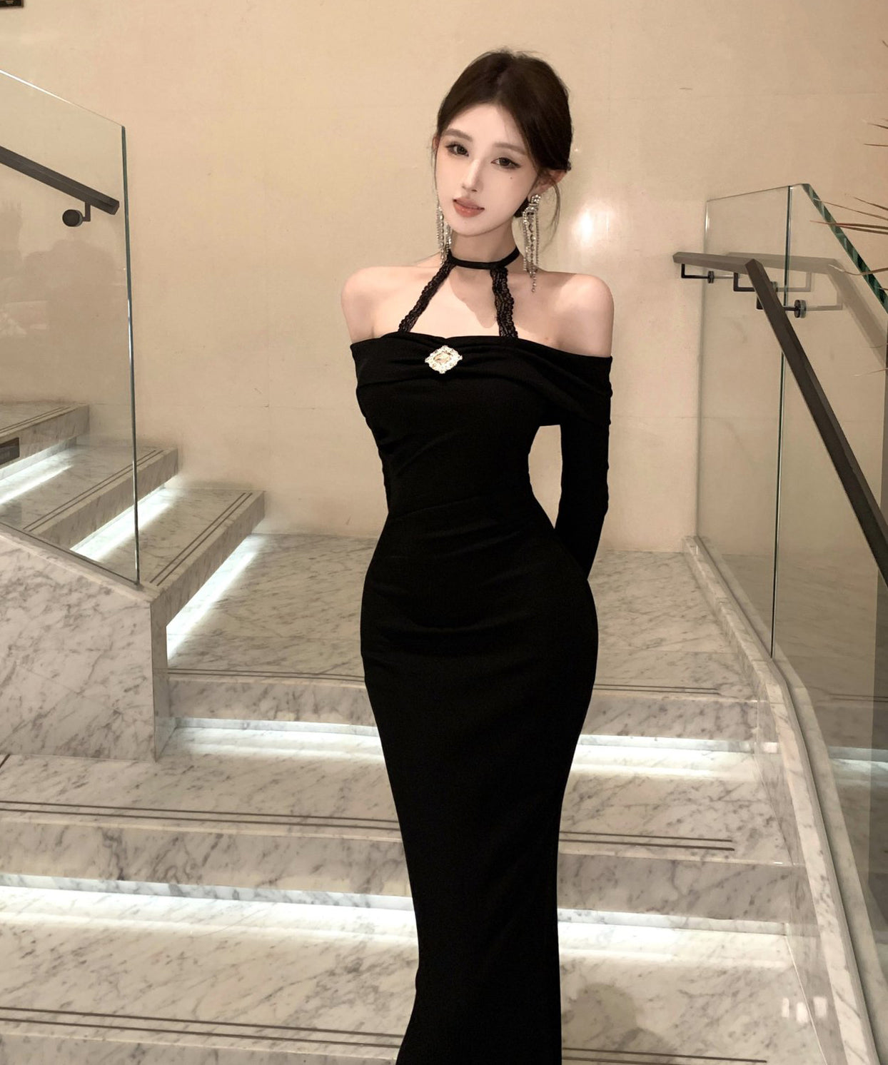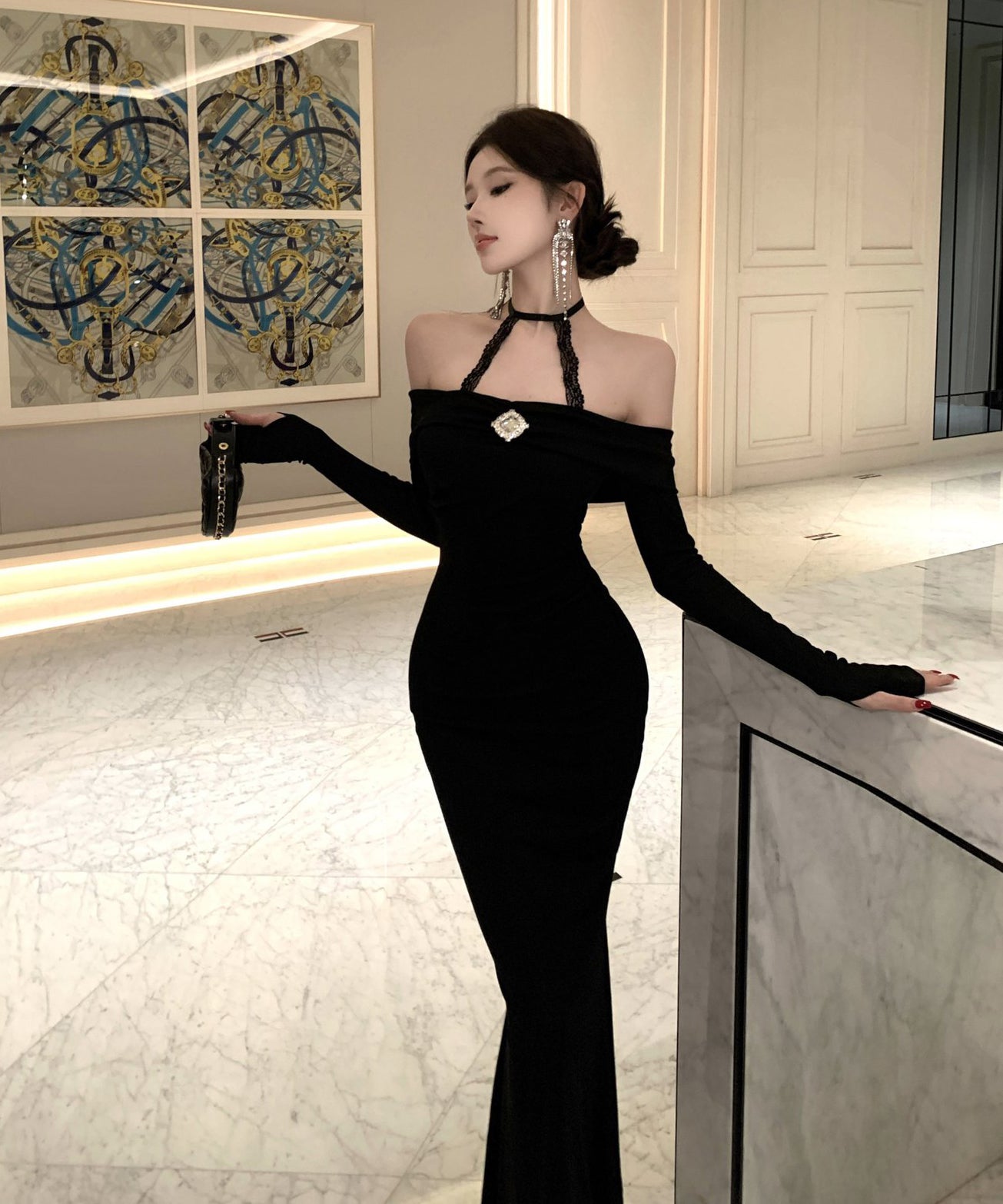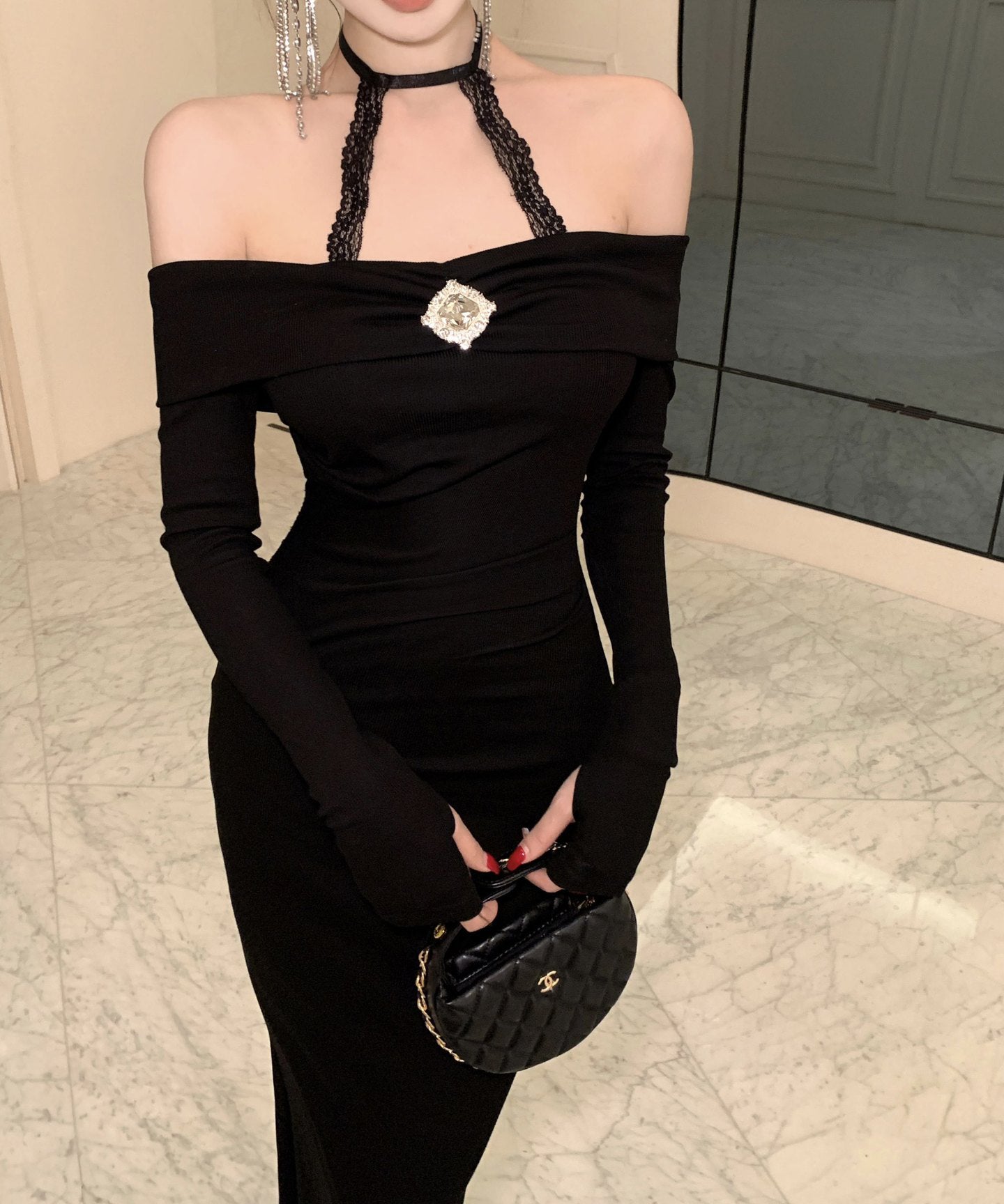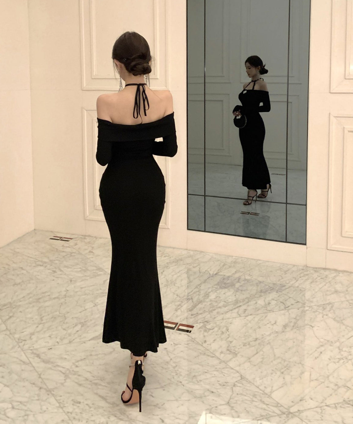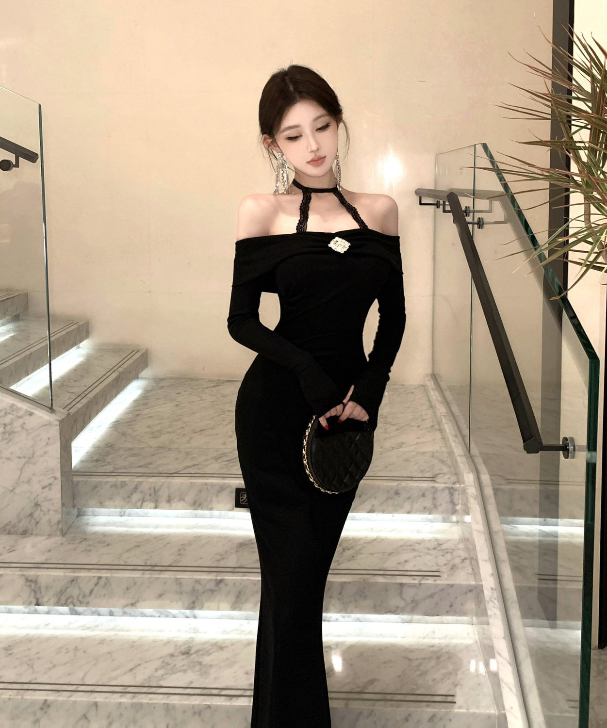 Lady's coco ロングドレス キャバドレス セクシー オフショルダー タイトワンピース ホルターネック 背中開き ボディコン デート 女子会 二次会 披露宴 パーティー LW2-OYF8723