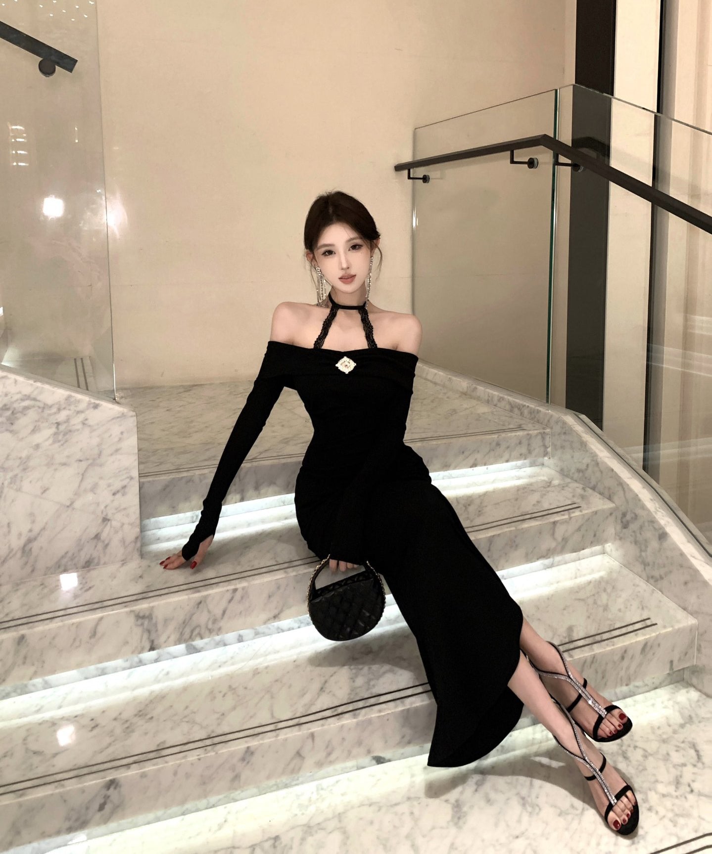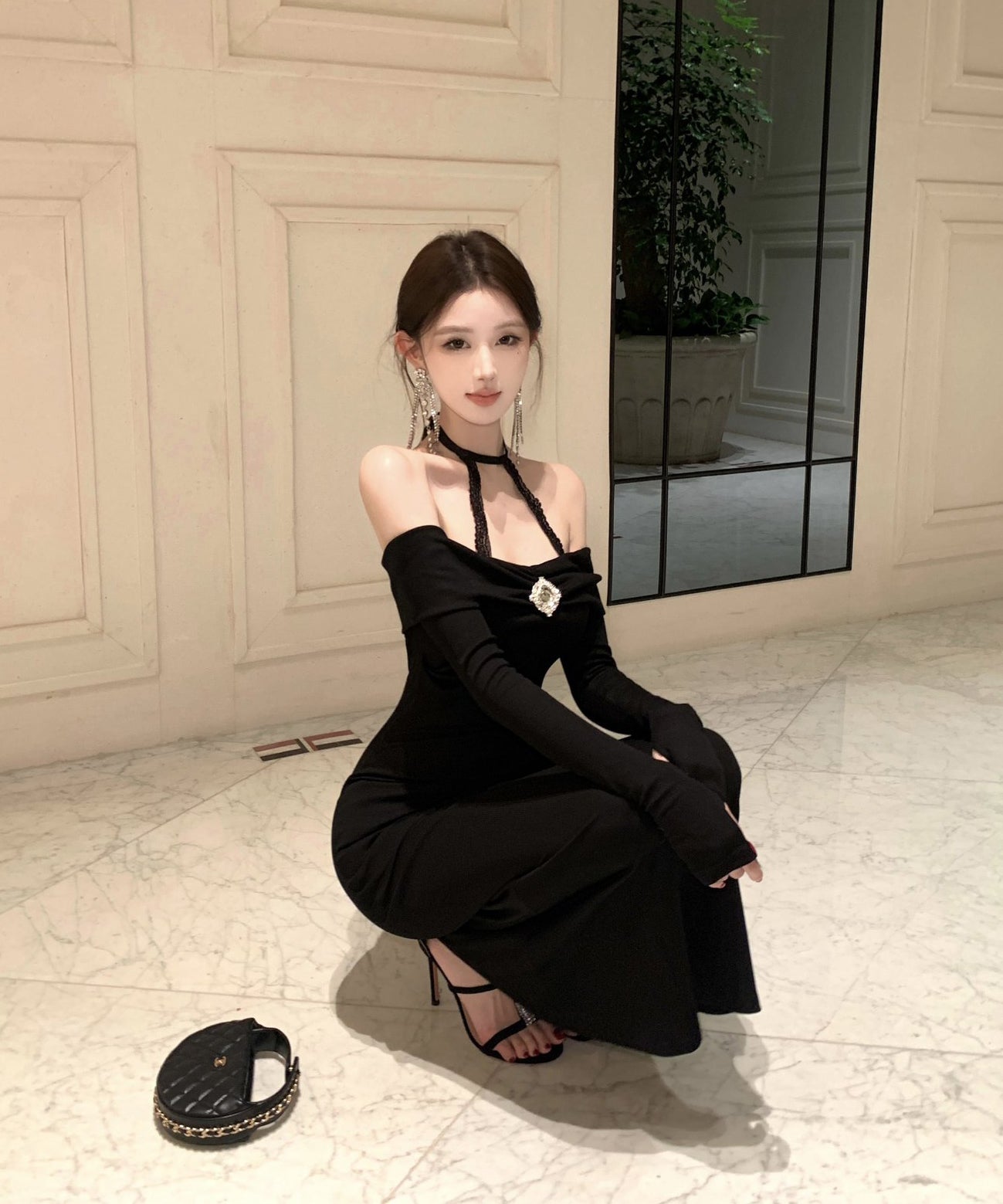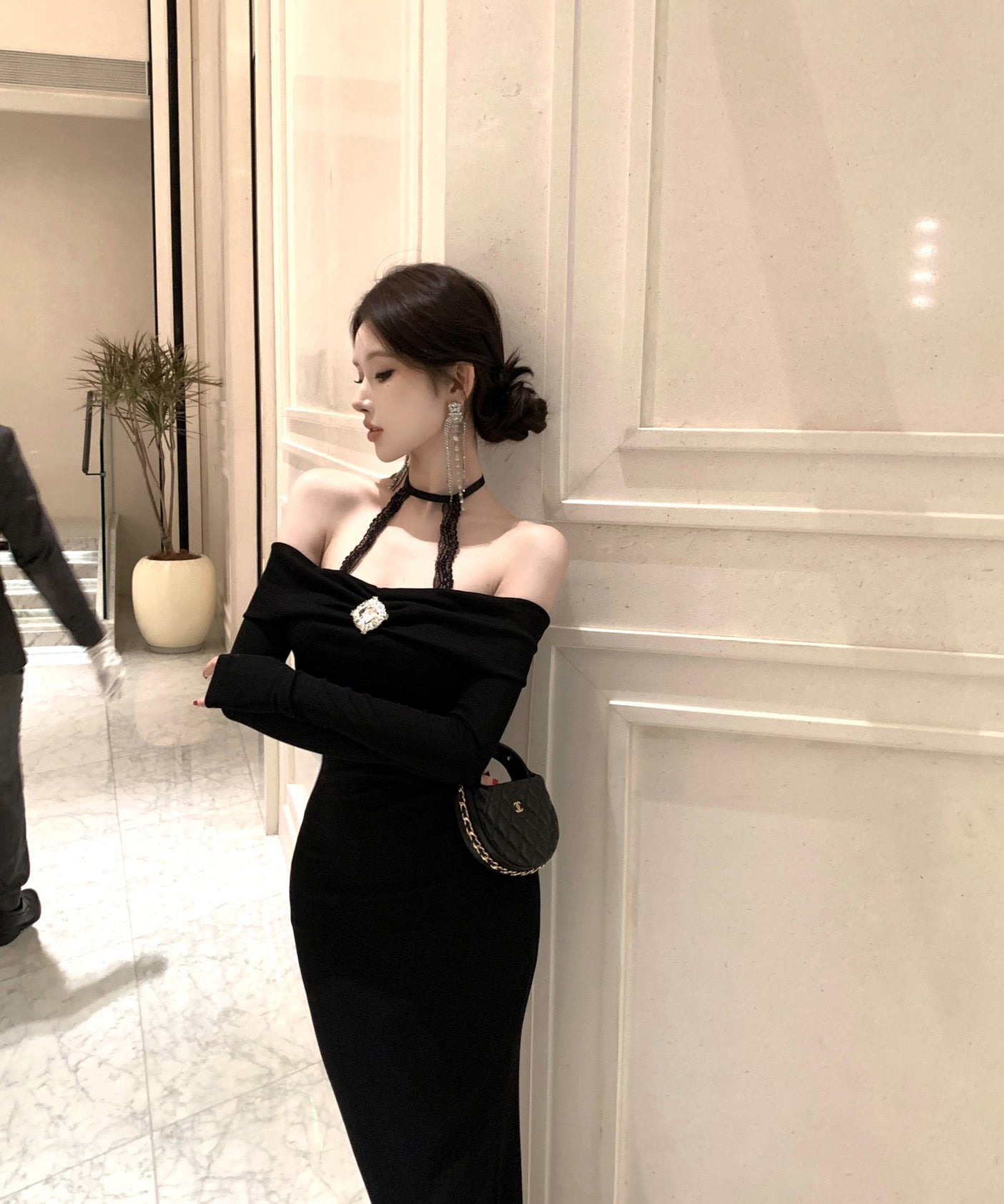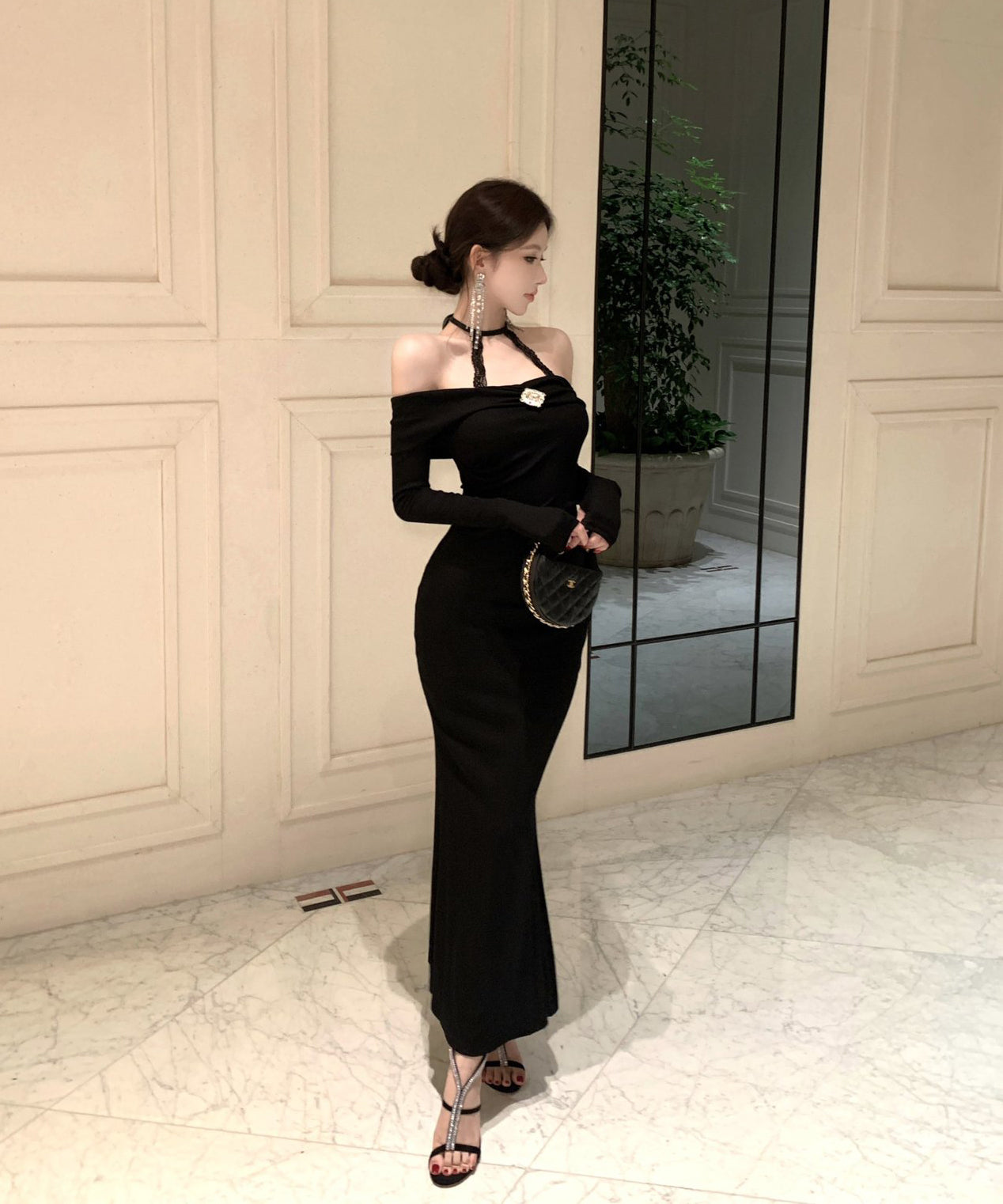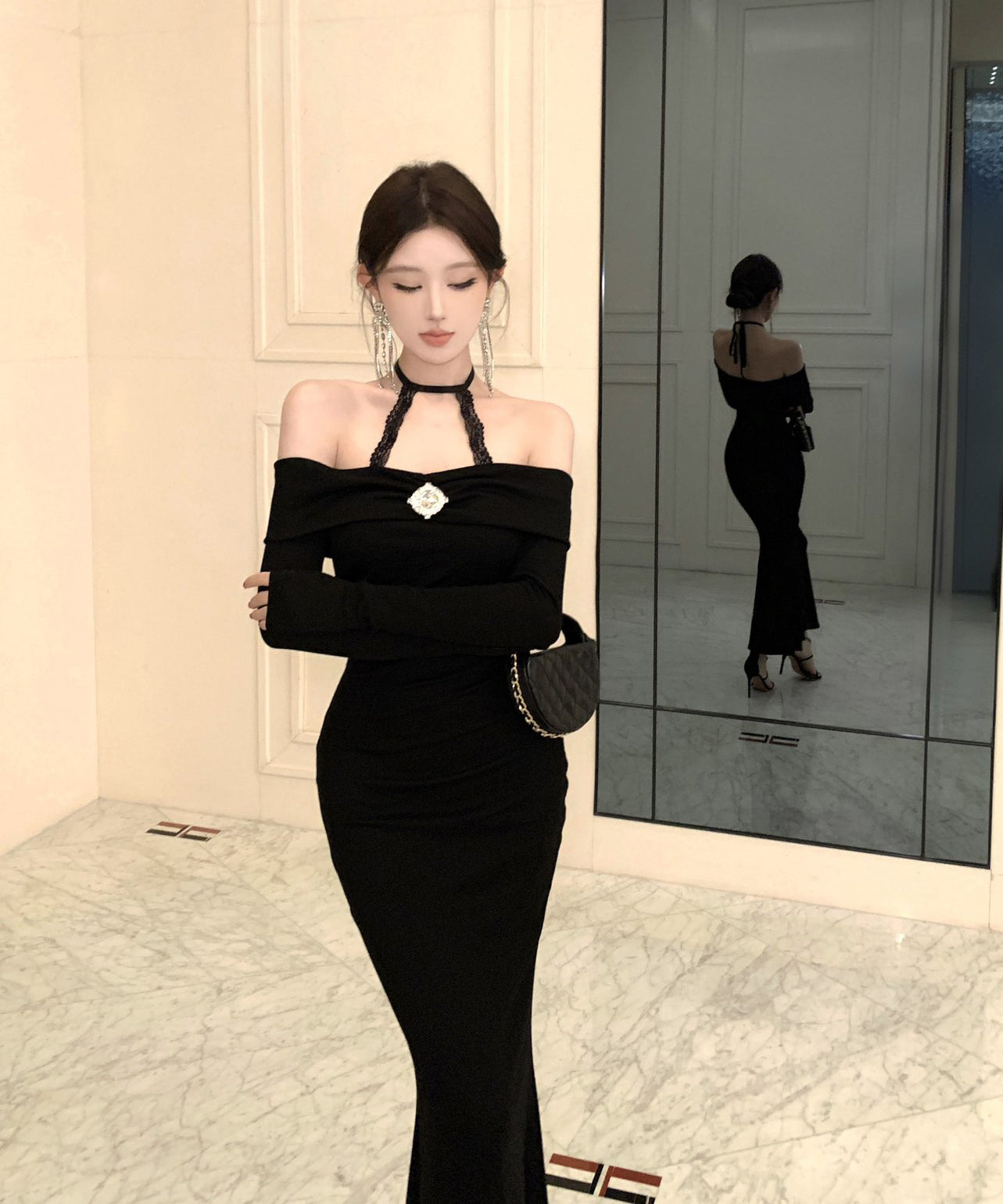 Lady's coco ロングドレス キャバドレス セクシー オフショルダー タイトワンピース ホルターネック 背中開き ボディコン デート 女子会 二次会 披露宴 パーティー LW2-OYF8723