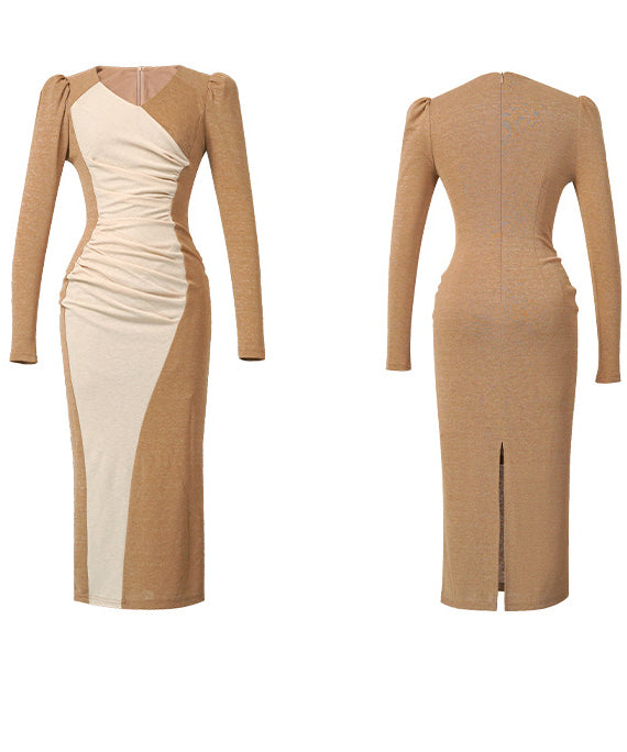 Lady's coco ロングドレス キャバドレス セクシー フレンチ風 Vネック デザイン バイカラー タイトワンピース 包臀ライン LW2-JY21896