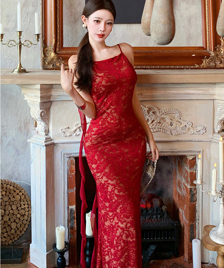 Lady's coco ロングドレス キャバドレス セクシー レース スリムフィット 背中あき 結婚式 二次会 披露宴 パーティー 上品 LW2-CD6-143-71900580
