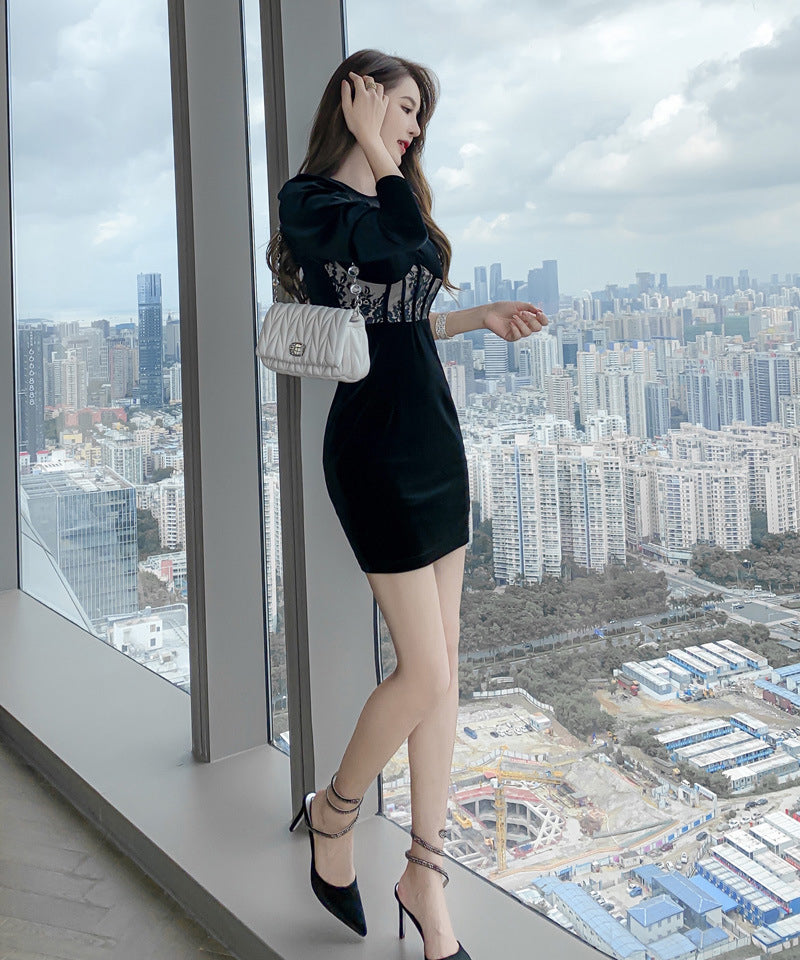 ベロア レース 肌見せ 高見え キャバドレス ミニドレス パーティードレス 長袖 ドレス YN2104-JY9300
