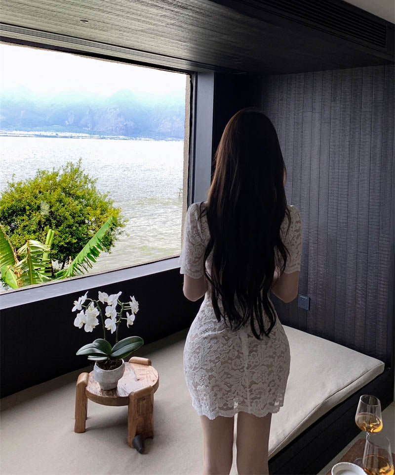 ミニドレスキャバドレスレースVネック小顔リボンカワセクシー高級感着痩せ気質通勤sweetie WQ2-XKD-D318A-6324-May10