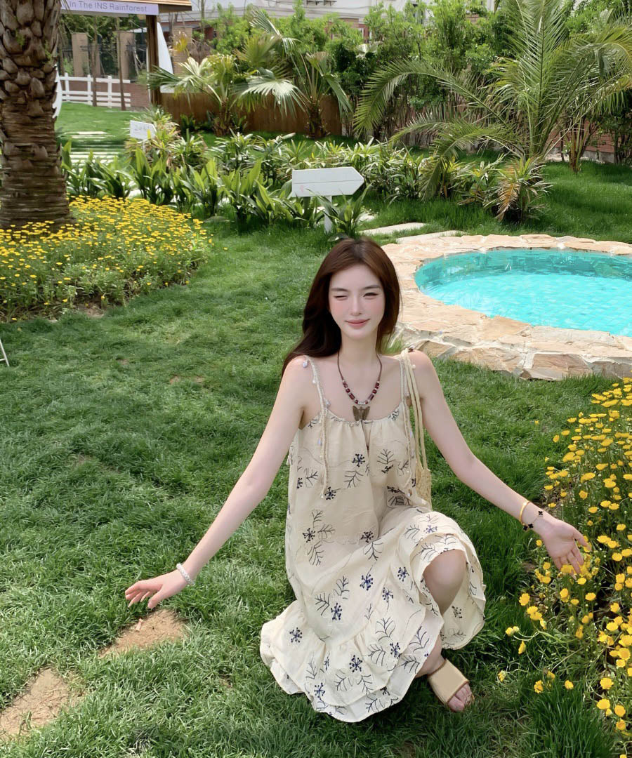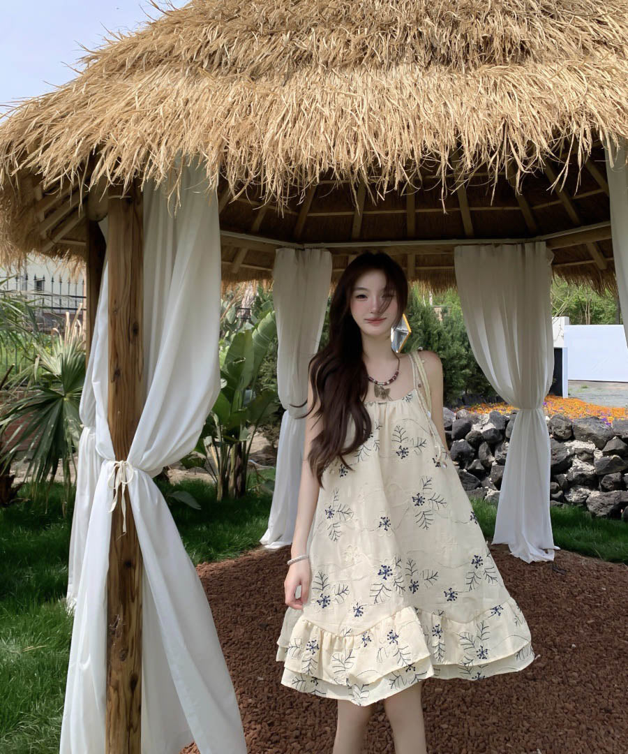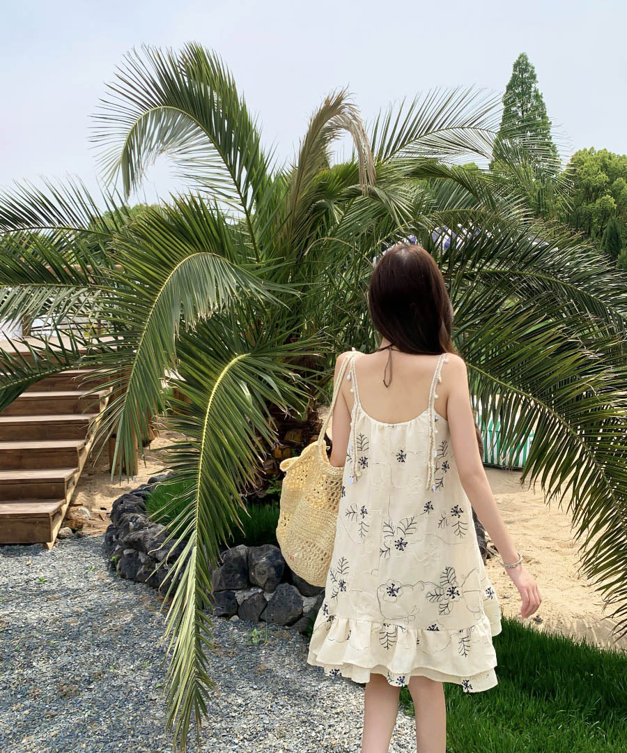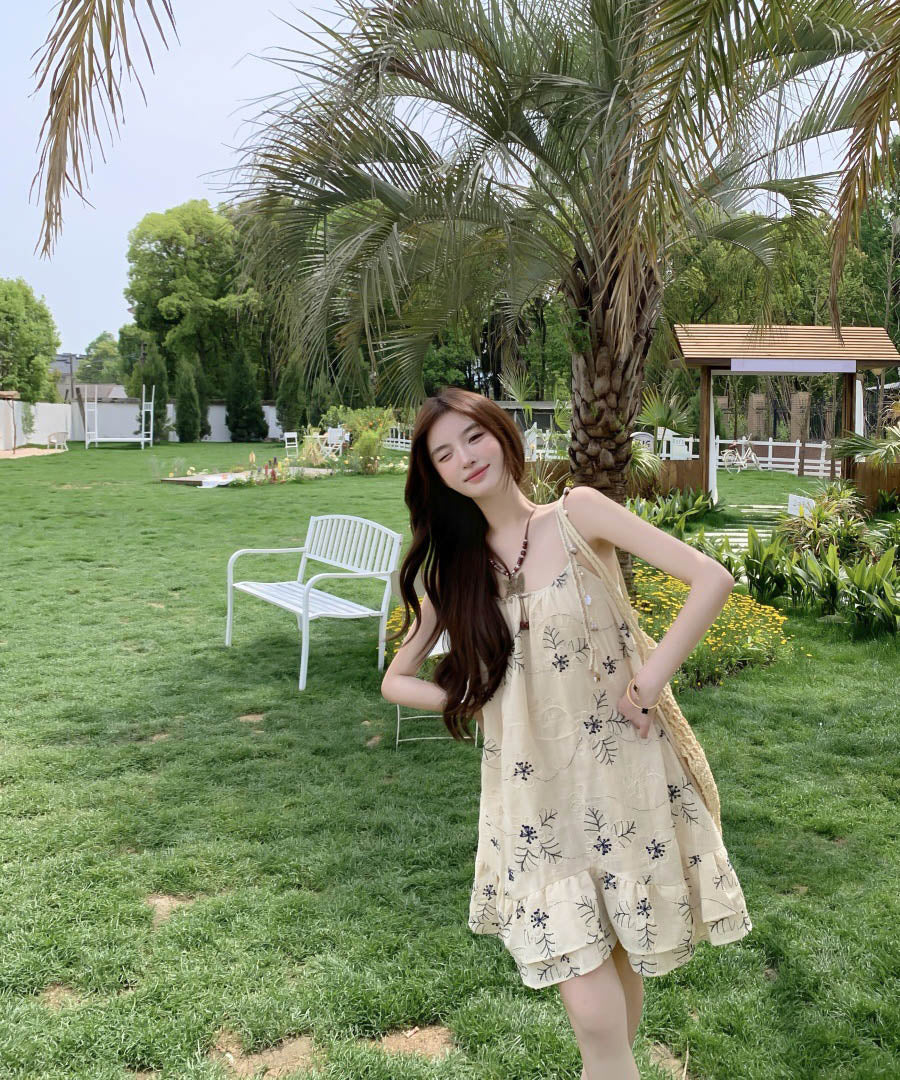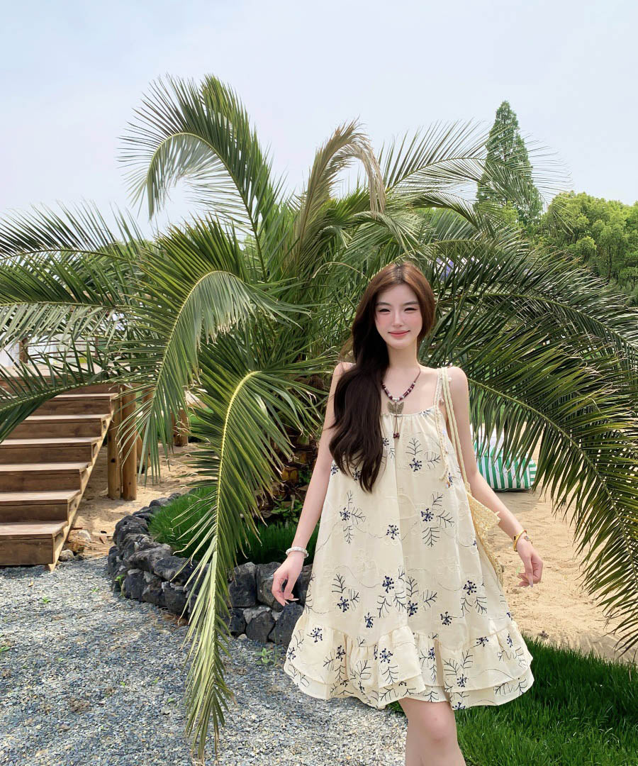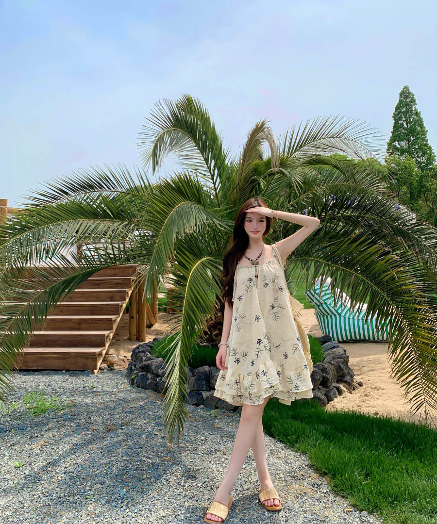 ミニドレスサンドレスAライン花柄フリル体型カバーセクシー大人可愛い旅行SNS話題 WQ2-CD3-227-10380700