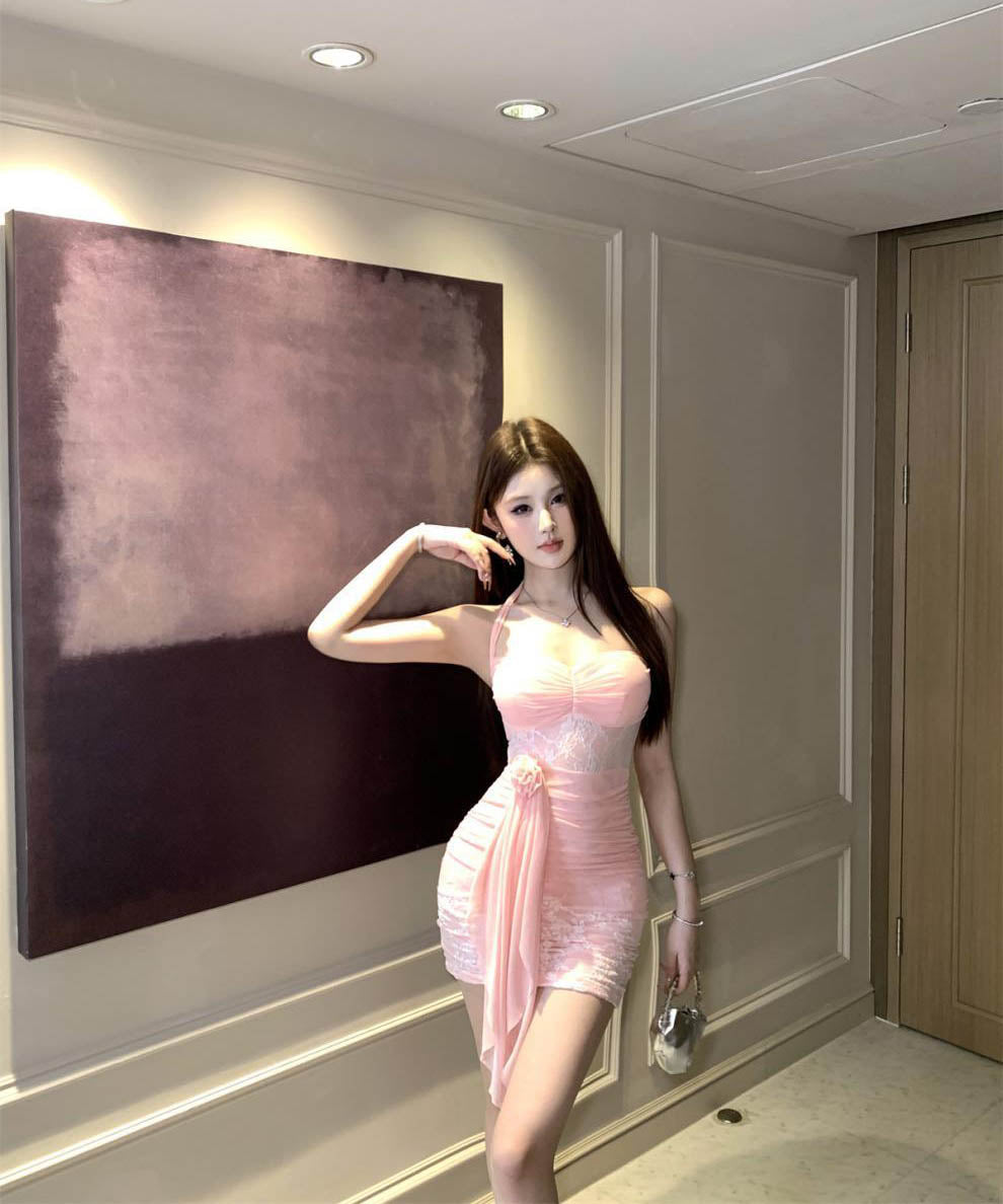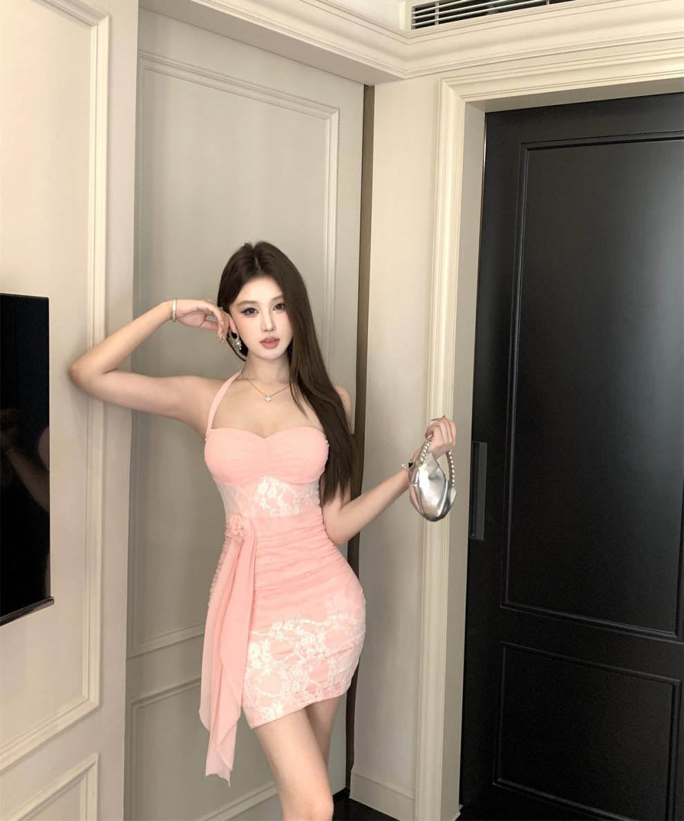 ミニドレスタイトドレスキャバドレスセクシーレースホルターネックエレガント気質フラワー非対称 WQ2-ZED885623DXH238B