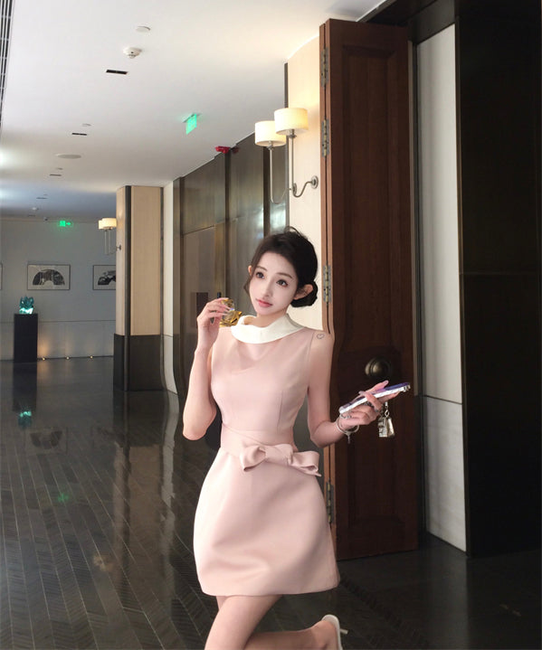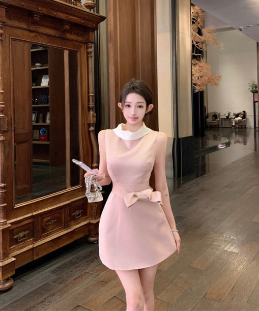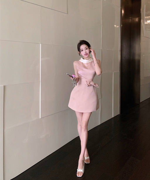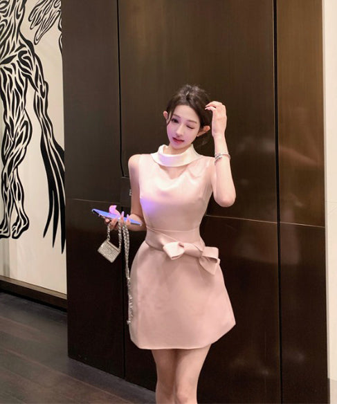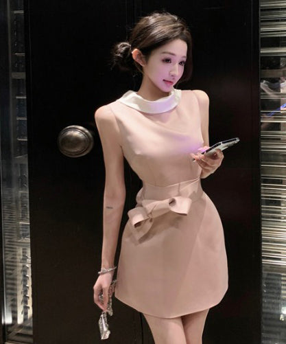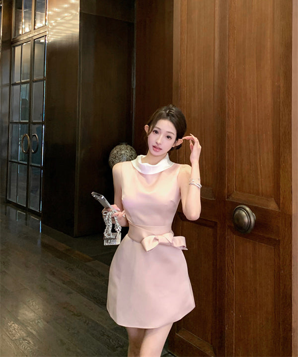 ミニドレスAラインリボン着痩せ気質パーティー宴会セレブ風夏エレガントSNS話題同伴 WQ2-MXX2210
