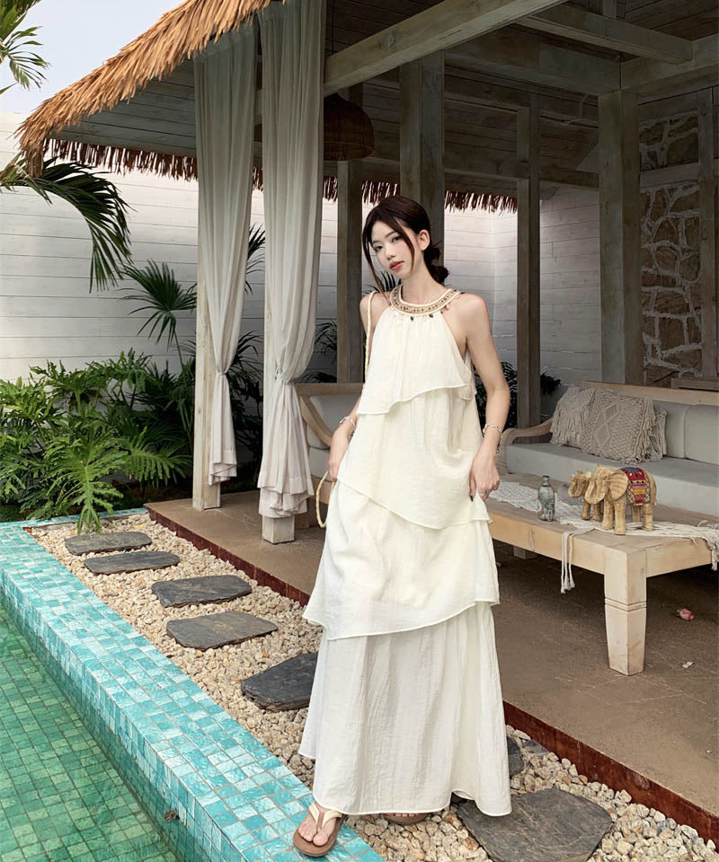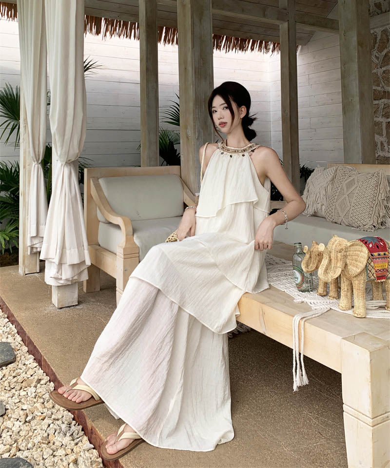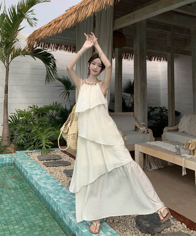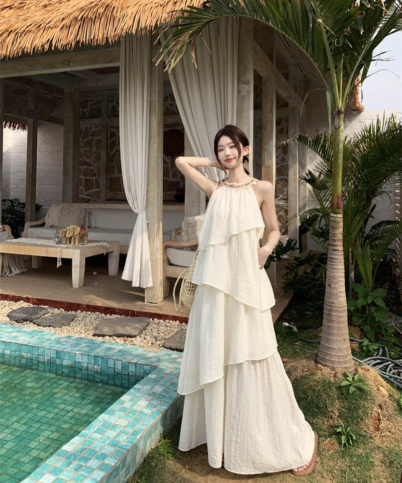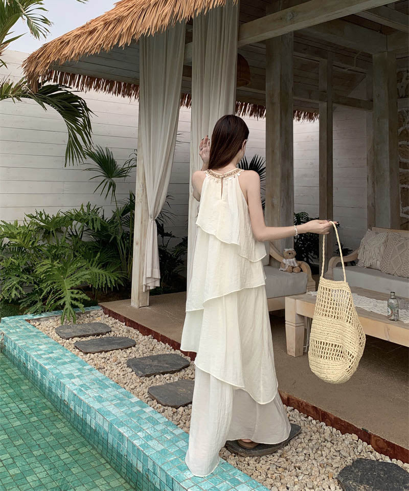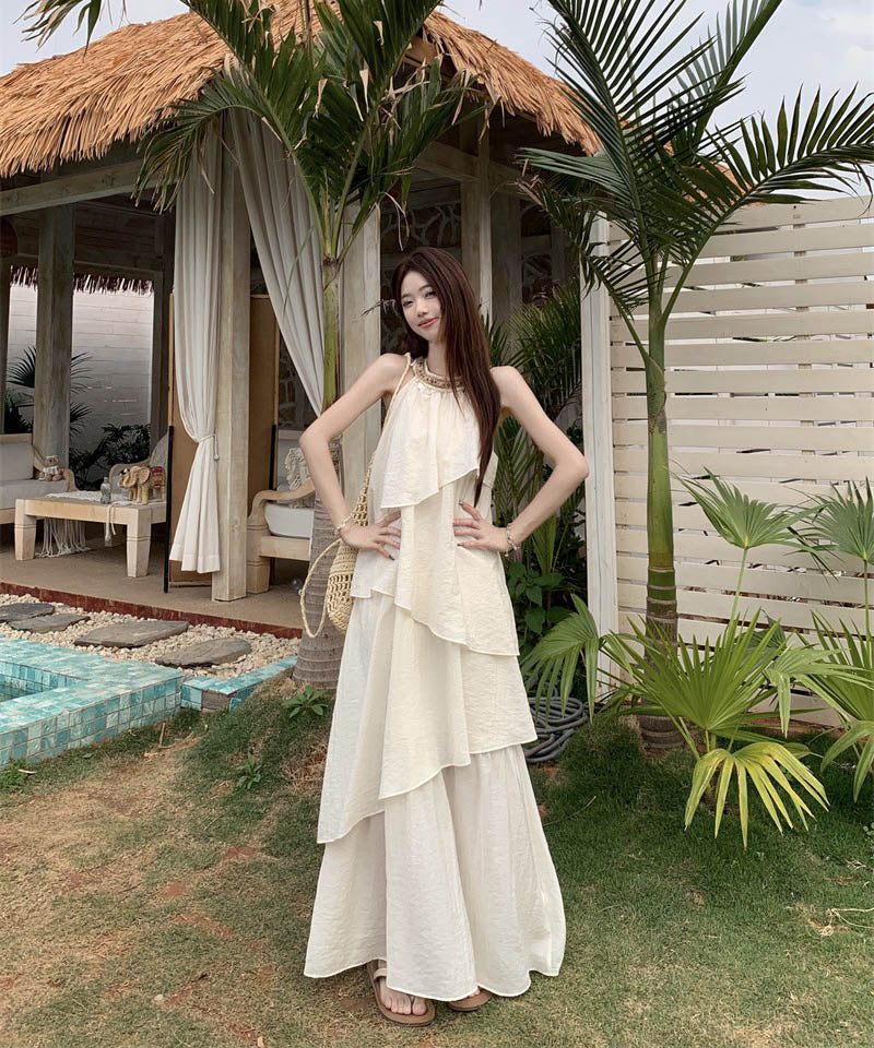 ロングドレスサンドレス非対称個性感キラキラ着痩せ気質旅行大人可愛いフリルフランス風 WQ2-CD15-A1023-10030680
