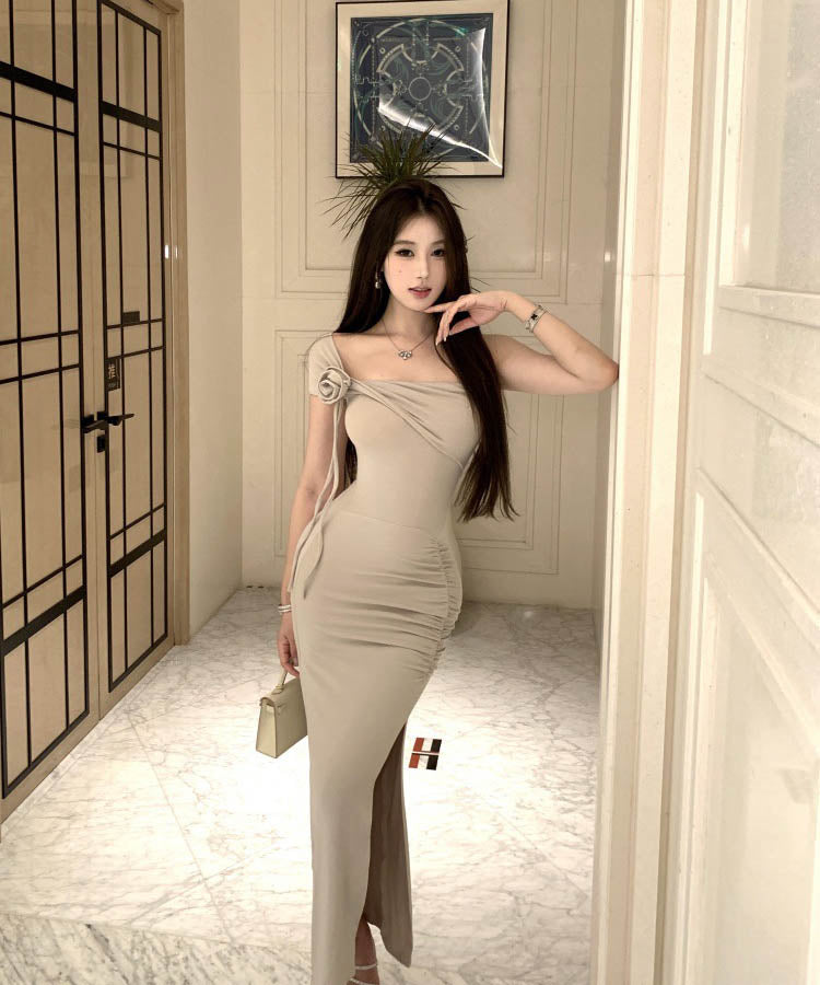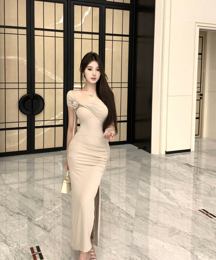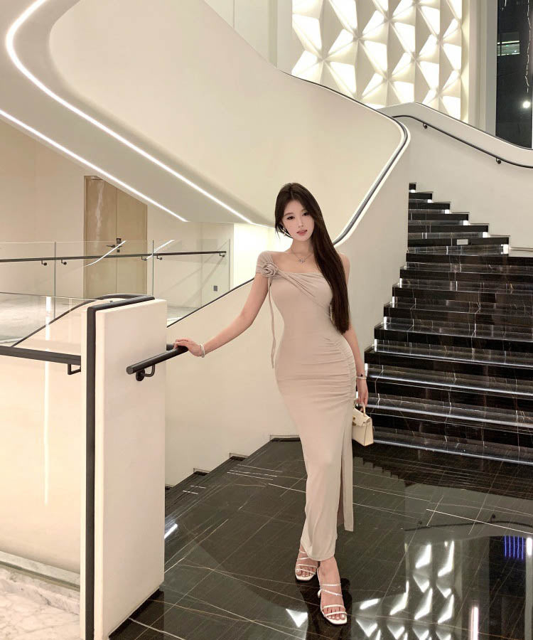 ロングドレスセクシーキャバドレス宴会パーティーワンショルダーフラワータイトドレス着痩せ気質 WQ2-ZED882540DXH437A