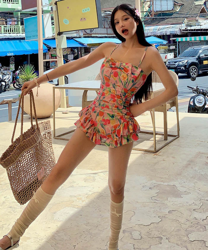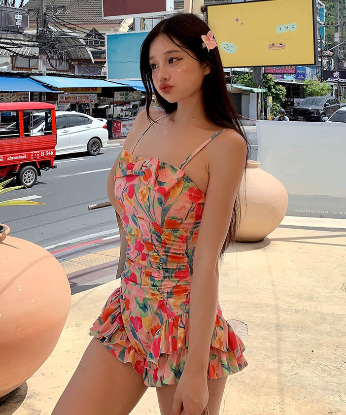 水着ビキニタンキニモノキニ花柄フリル体型カバー露出控え着痩せ温泉ビーチ海 WQ7-DP-A33242