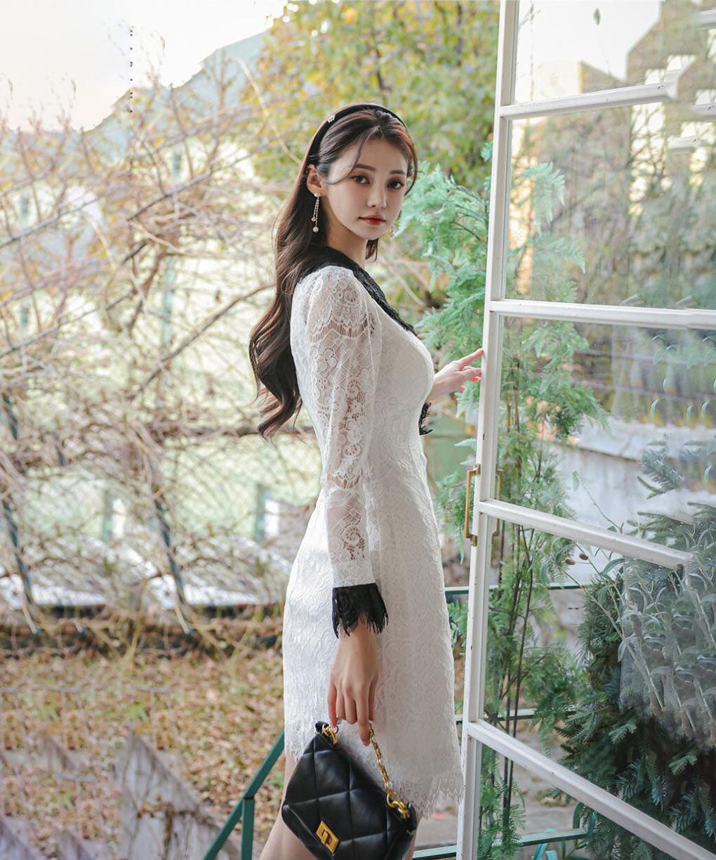レース ひざドレス かわいい 清楚 宴会 高見 気質 セレブ風 MY2-ZED889728BH538