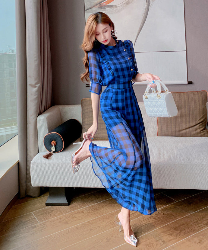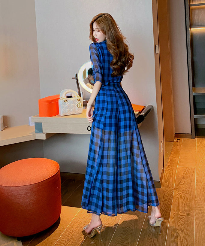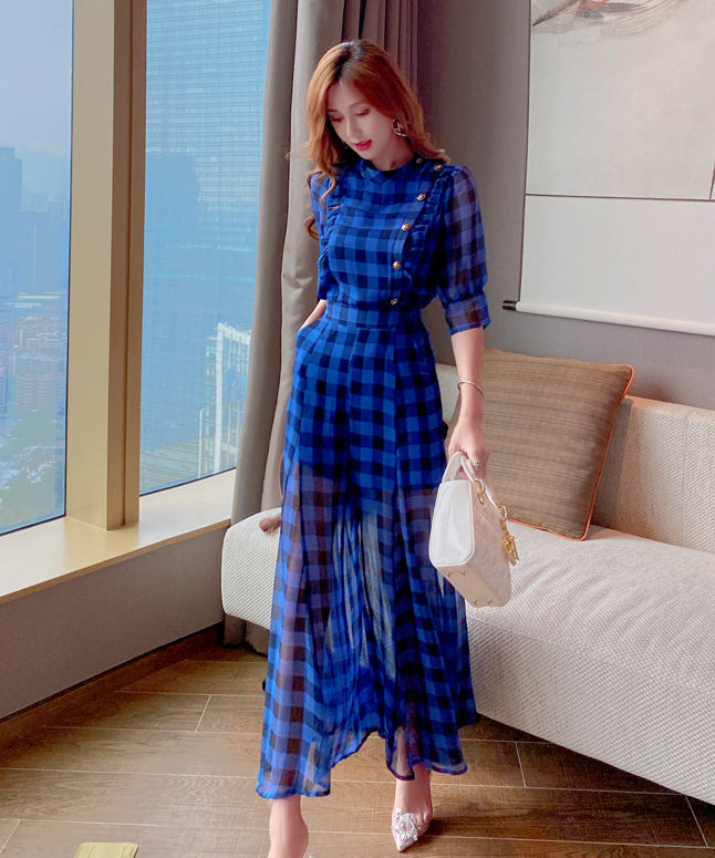 【2点セット】ワイドパンツ チェック柄 ゴージャス 通勤 高級感 新作 MY2-JY4041