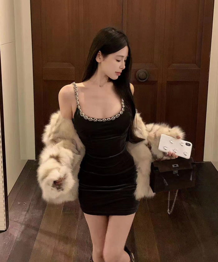 【2色】ミニドレス キャバドレス キラキラ 肌見せ 指名 キャバクラ セクシー XH2-DD7338