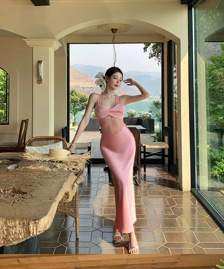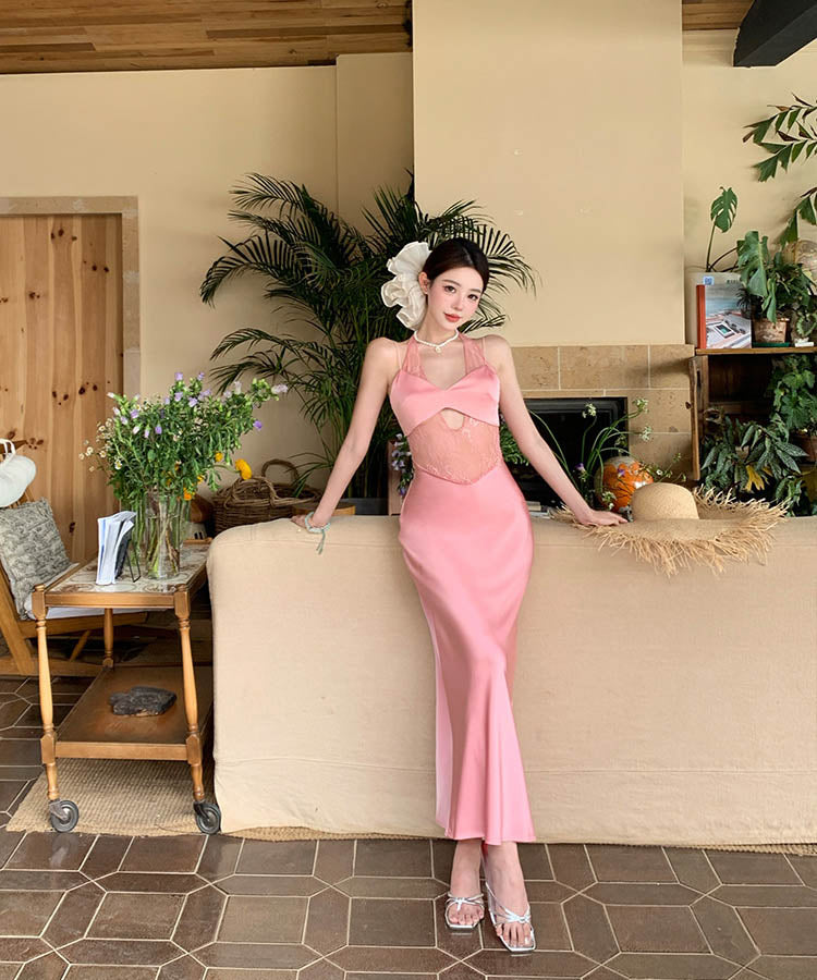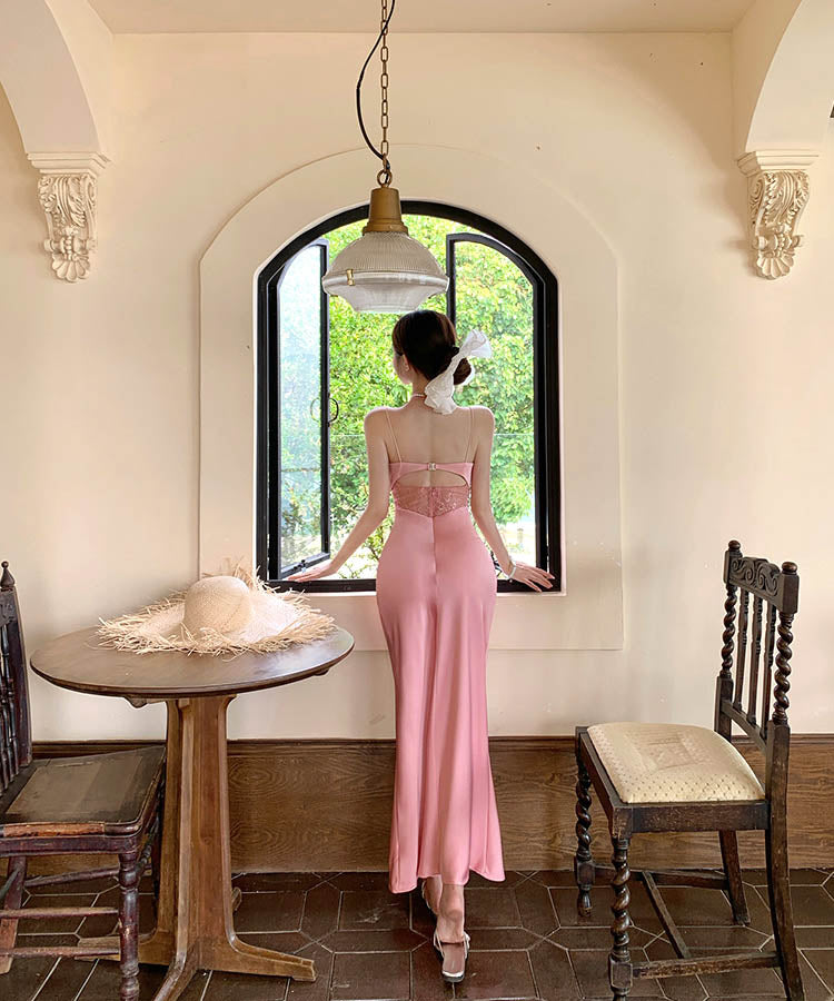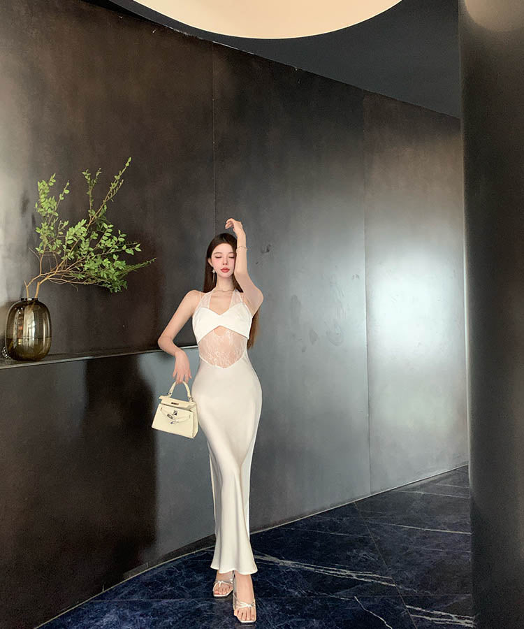 【2色】ロングドレスレースサテンドレス肌見せナイトクラブセクシーエレガント WQ2-XHY919788