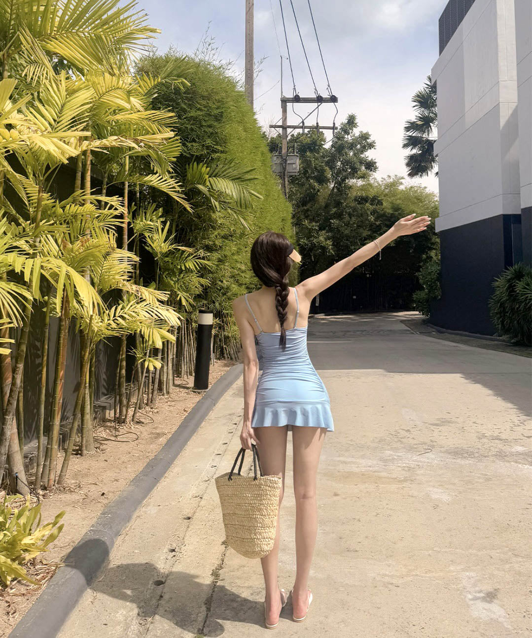 【3色】ビキニ水着ホルターネックワンピース気質セクシーモノキニ体型カバー温泉フリル WQ7-YQ-HH6X63THLL