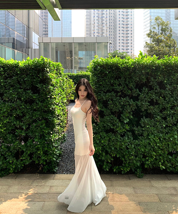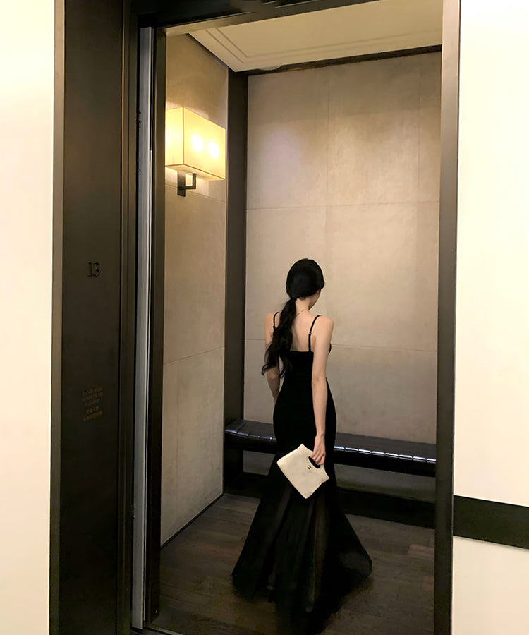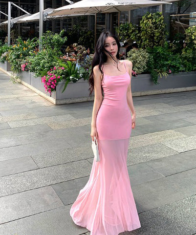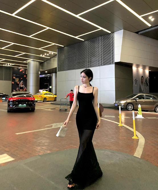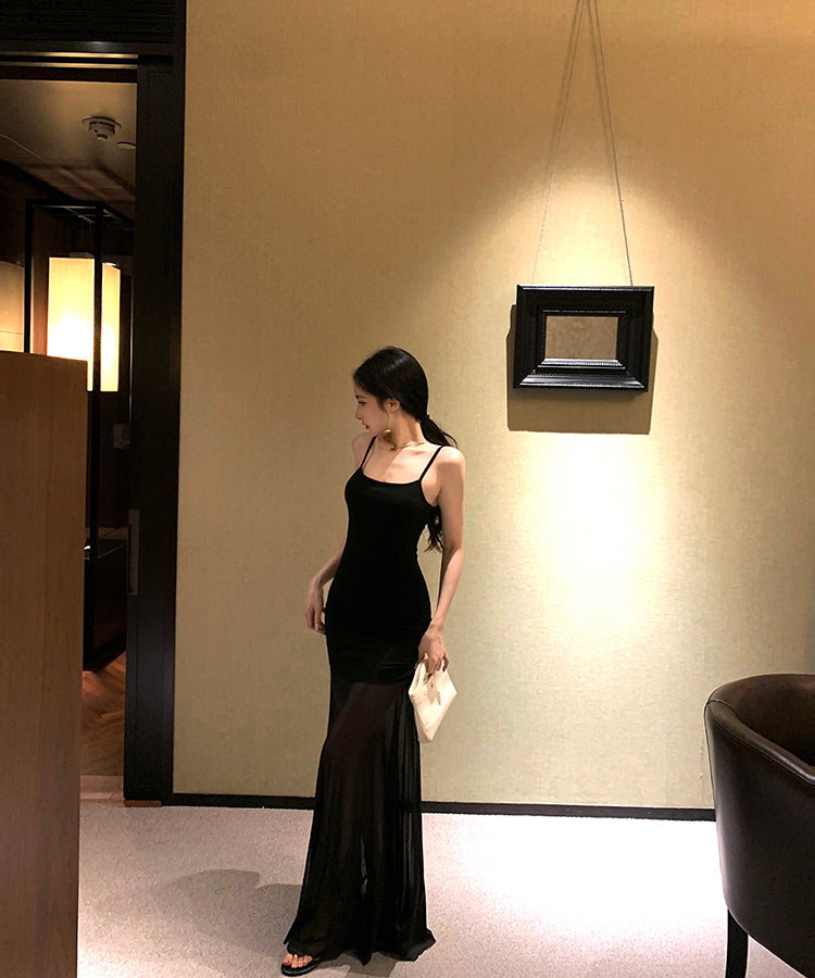 【3色】ロングドレスキャミワンピカワセクシーチュール透明感マーメイドドレスパーティー同伴気質 WQ2-MXX5195