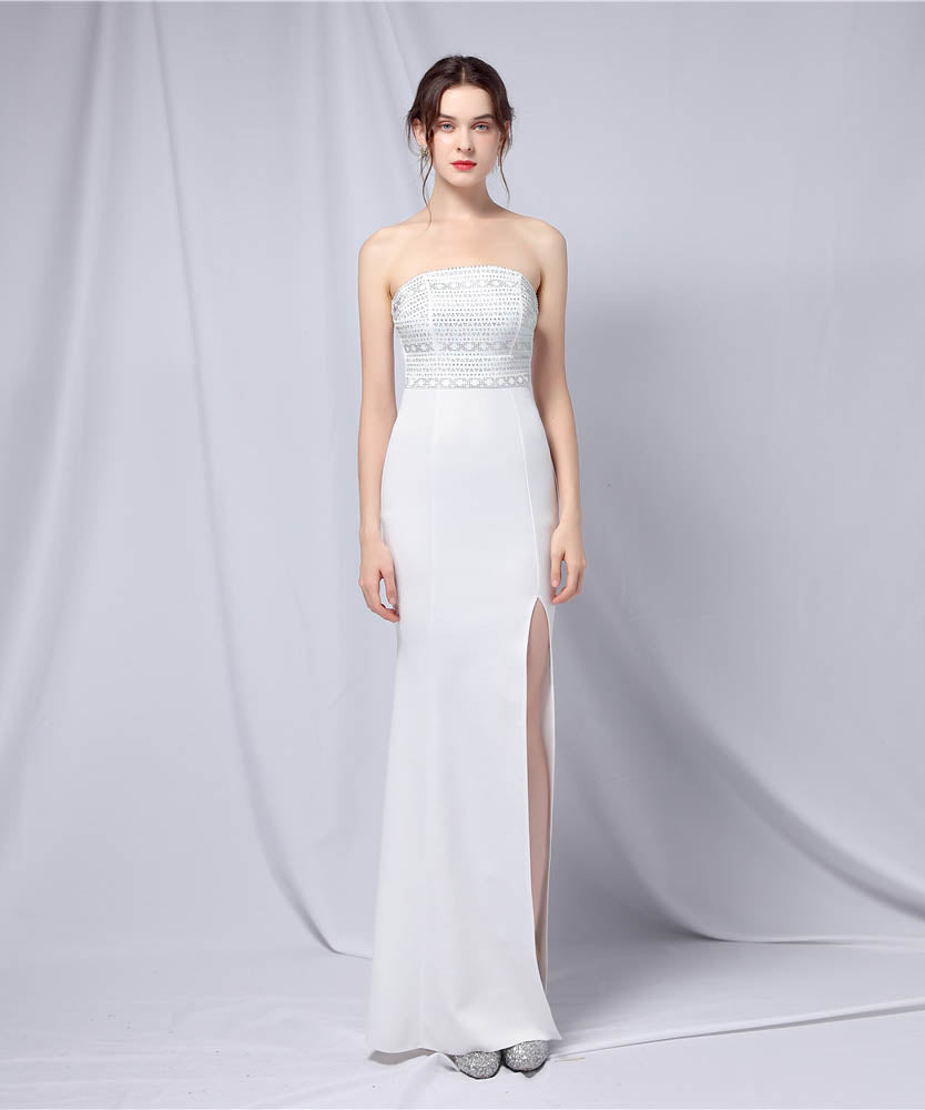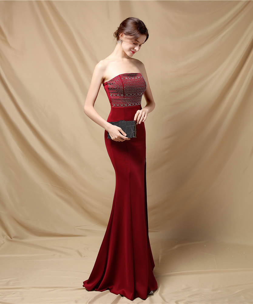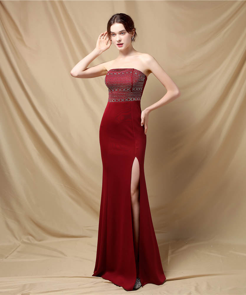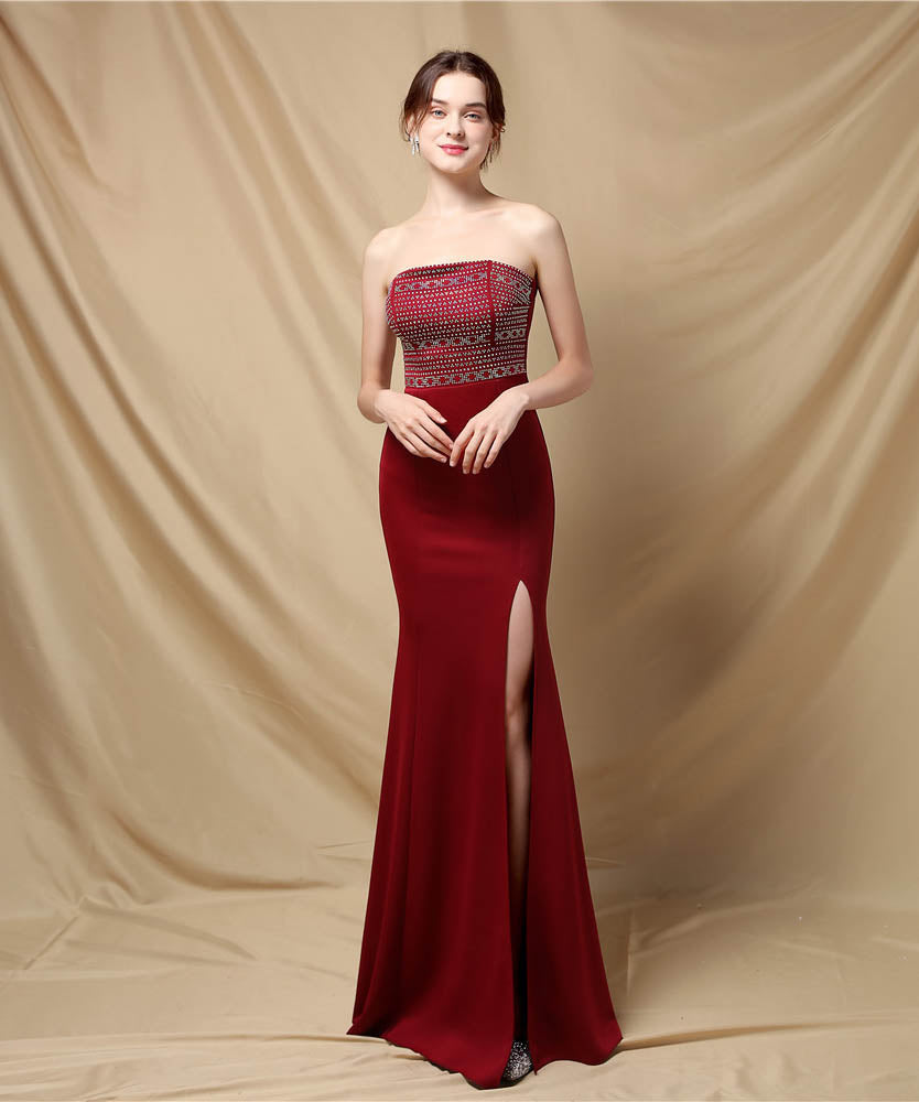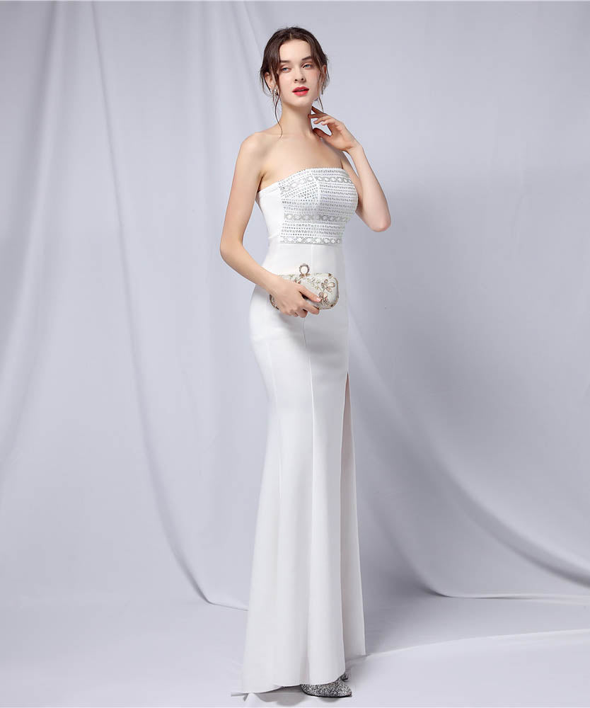 【3色】ロングドレスベアトップキラキラセクシー手作りドレスナイトドレス高級感演奏会宴会パーティーイベント WQ2-YEY18717#