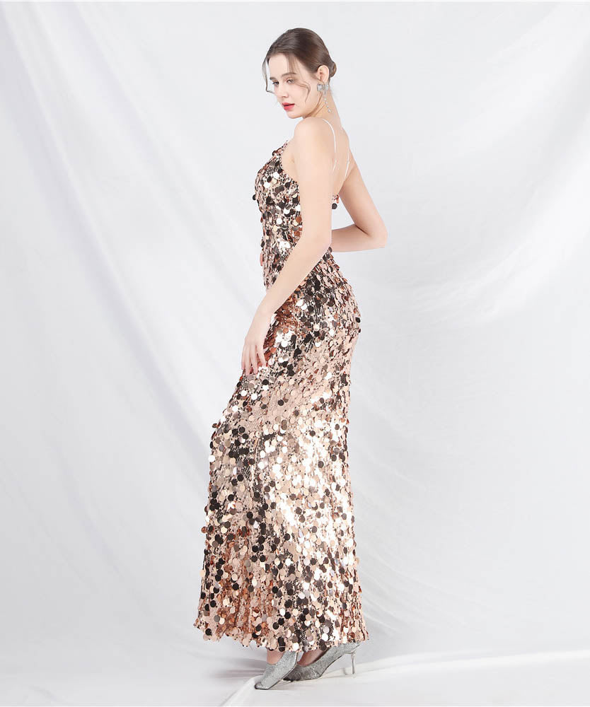 【6色】ロングドレス キラキラ パーティードレス ワンーショルダー お姫様 誕生日 演奏会 イベント宴会 WQ2-YEY31579#