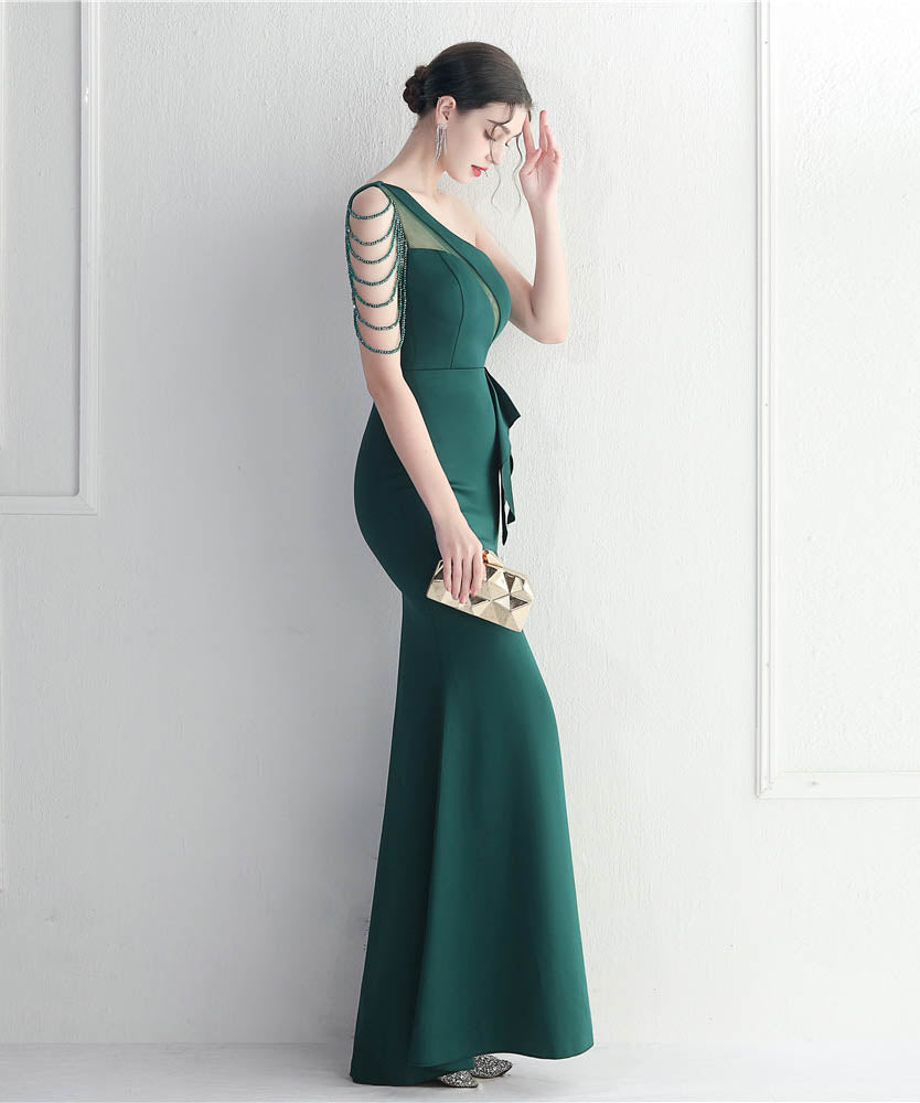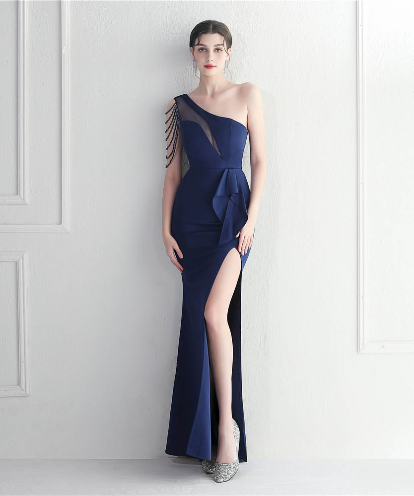 【6色】ロングドレス キラキラ パーティードレス ワンーショルダー お姫様 誕生日 演奏会 宴会 WQ2-YEY19971#